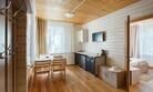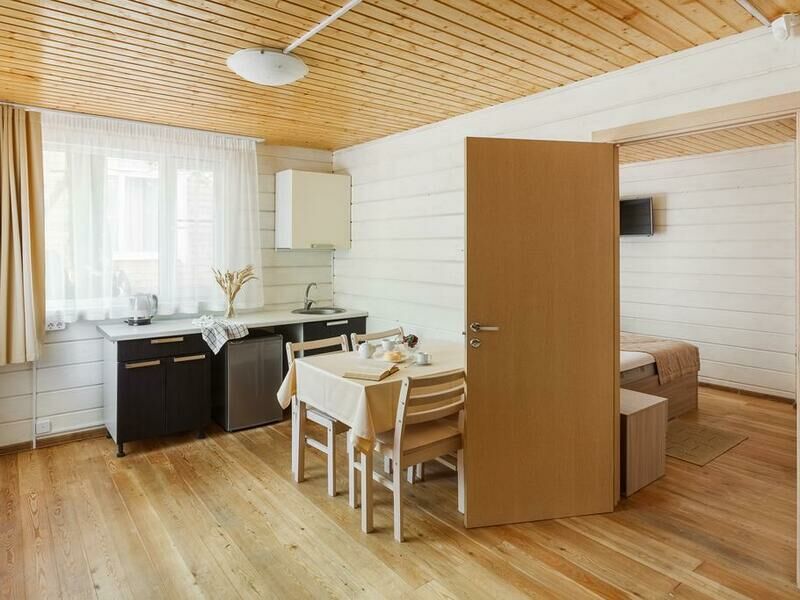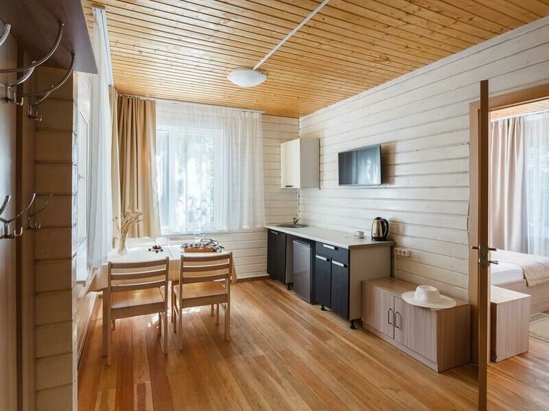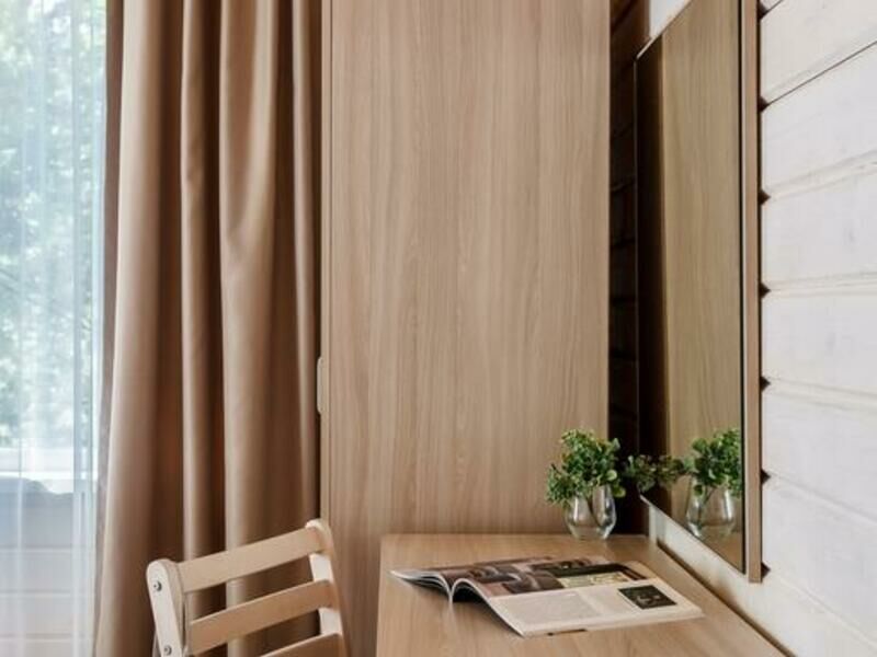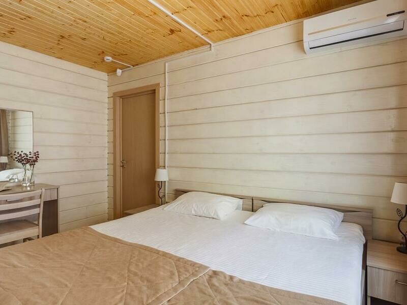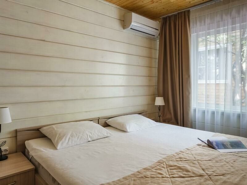 На благоустроенной территории площадью 8 гектаров разместилось несколько двухэтажных корпусов. Гости могут выбрать размещение в номерах категории Студио, Стандарт или заселиться в просторные Апартаменты. В светлых и уютных номерах есть все для комфортного отдыха — современная мебель, бытовая техника, собственный санузел.