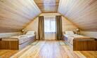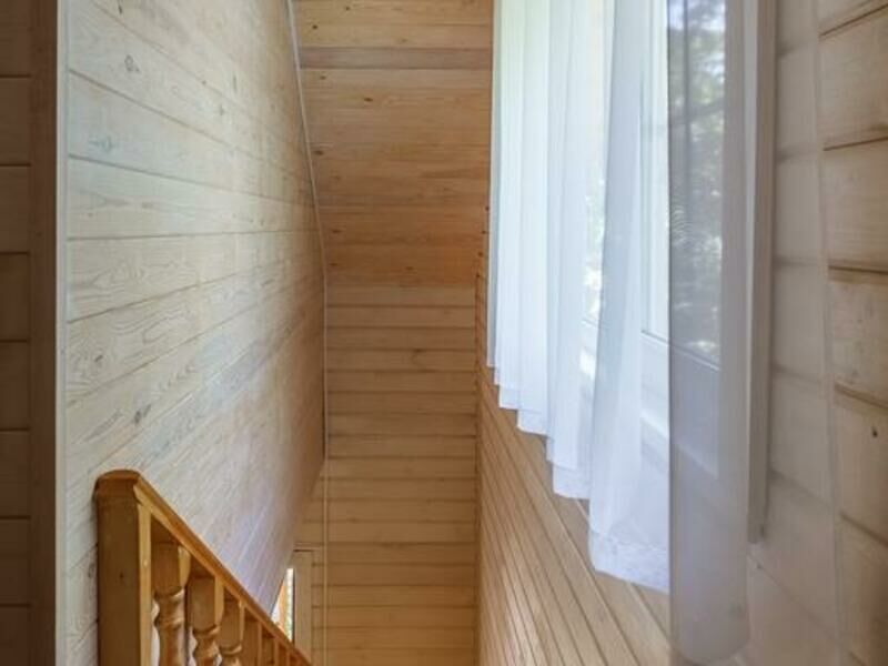 В паре минут ходьбы находится поселковый галечный пляж. На пляже есть навесы, кабинки для переодевания, можно взять в аренду шезлонги.