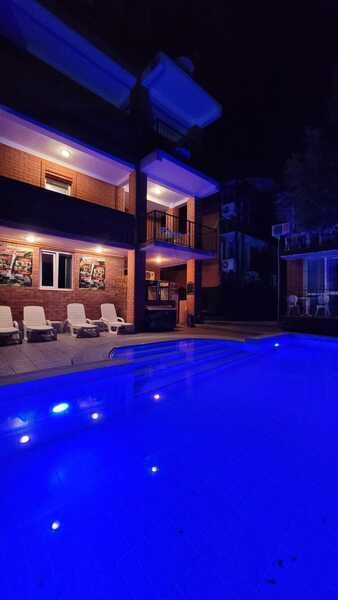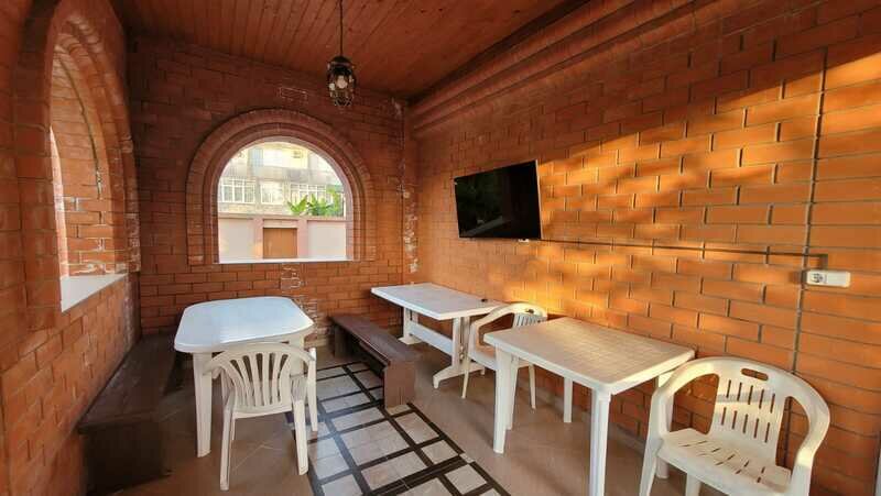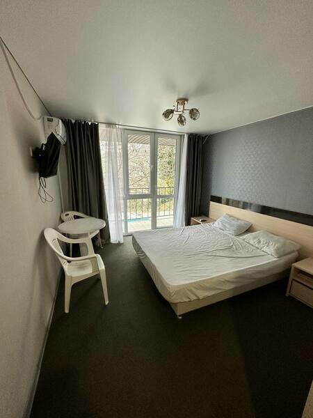 В шаговой доступности магазины, аптеки, столовые, аквапарк, дельфинарий и вся развлекательная инфраструктура. Номера комфортные со всеми удобствами, балкон, кабельное ТВ, Wi-Fi, холодильник, в отдельных номерах имеются ванная комната. Номера 2х 3х 4х 5-ти 6-ти местные, двух типов: однокомнатные, 2х комнатные, 3х комнатные.