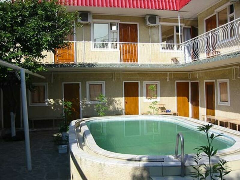 Трехэтажный корпус «Испанского дворика» в Анапе имеет собственный, закрытый от посторонних двор, площадью в 0,02 га, тенистый и украшенный зеленью, с удобными зонами для отдыха, приема пищи на свежем воздухе и детских игр. Жилой фонд гостевого дома способен одновременно вместить более 65 человек.