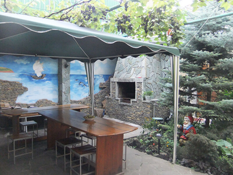 Питание гостей не входит в пакет услуг отеля “Испанский дворик” в Анапе. Для гостей, желающих готовить самостоятельно, есть две кухни- столовые с необходимыми бытовыми приборами, посудой, столами и стульями. Во дворе выделен уголок для мангала с навесом и необходимой мебелью для большой дружной компании. Самых различных пунктов питания на любой вкус достаточно неподалеку от гостевого дома.