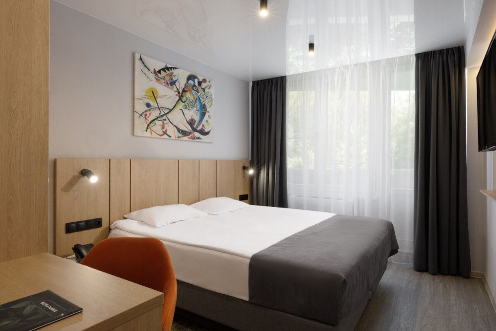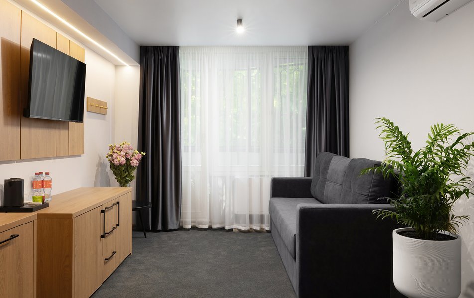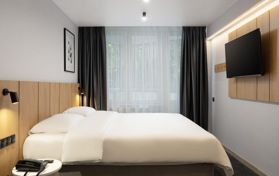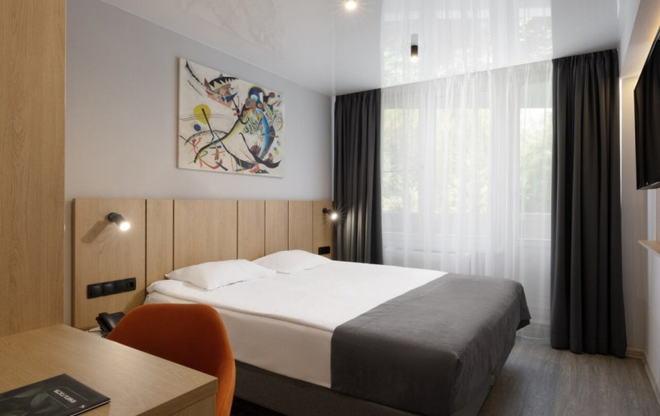 Просторный комфортабельный номер с большой двуспальной кроватью или двумя односпальными и мягкой мебелью идеально подходит для размещения 1-2 человек.