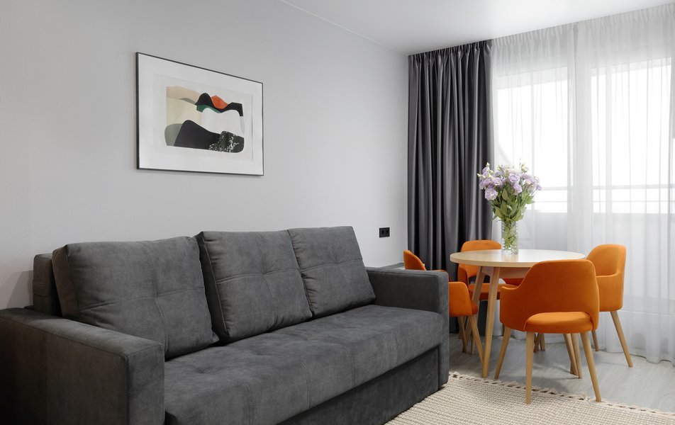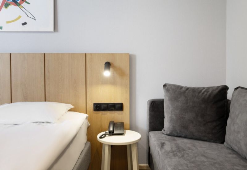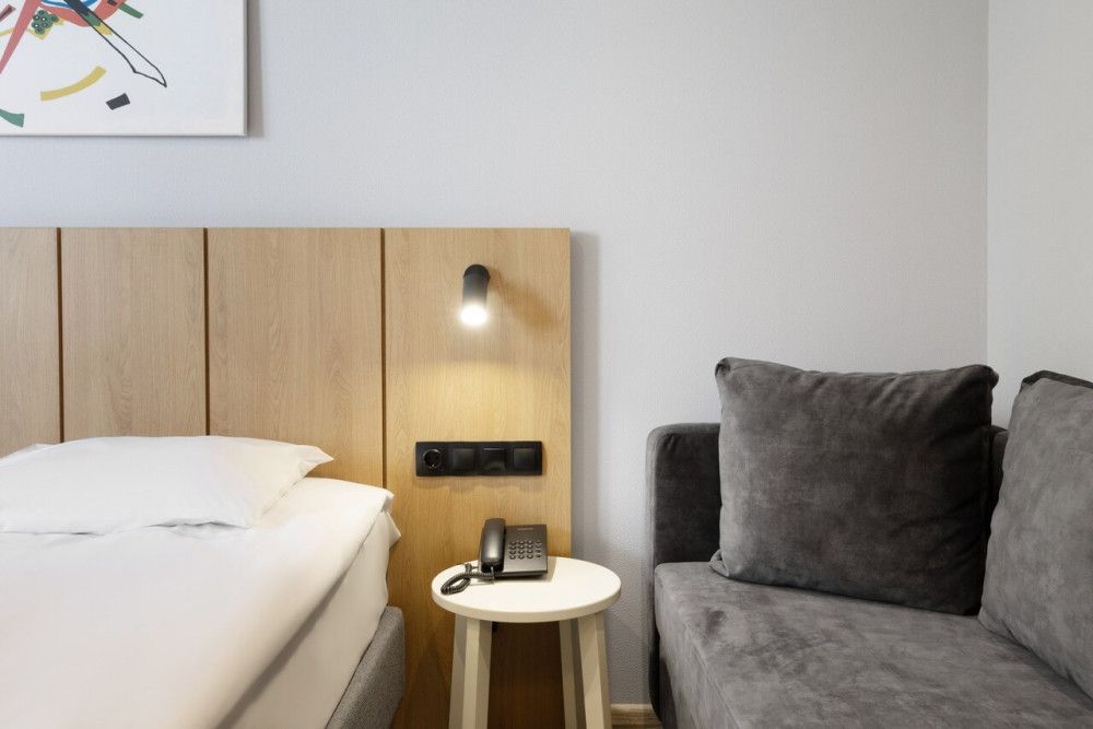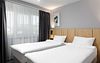 Номер с двумя раздельными или 1 большой кроватью и диваном идеально подходит для размещения 2-3 человек.