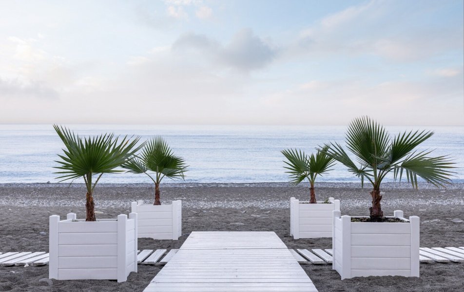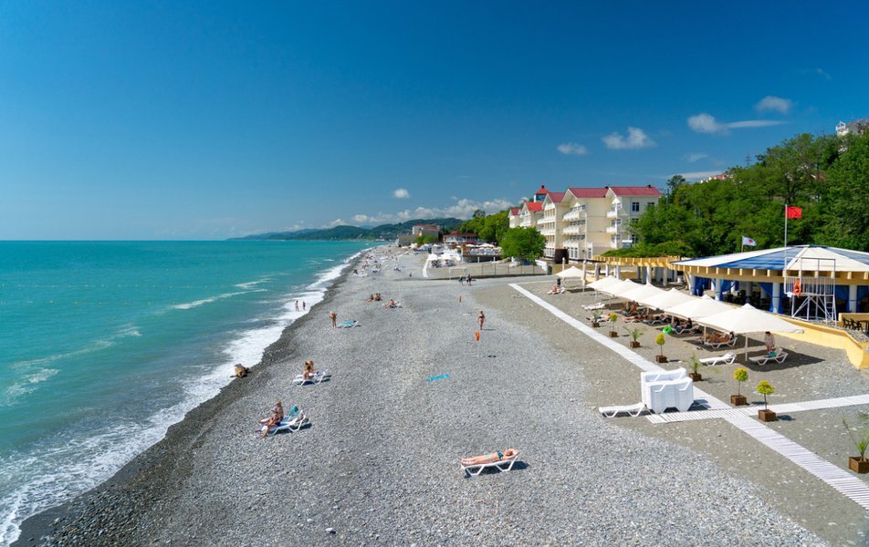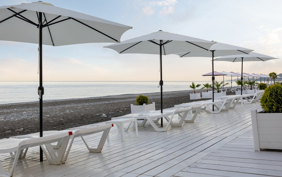 Пляж, песчано-галечный, он благоустроен и поддерживается в порядке. На нём есть душевые, кабинки для переодевания, туалеты, лежаки, зонты, пляжные коврики и полотенца, действуют аттракционы, центр водно-моторных видов спорта.