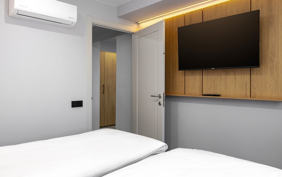 Номер с двумя раздельными или 1 большой кроватью идеально подходит для размещения 1-2 человек.