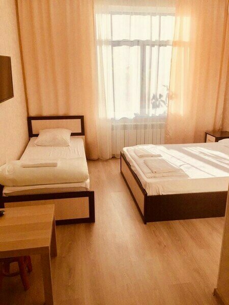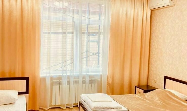 Гостевой дом представляет собой двухэтажное здание. Для размещения предлагаются 3-х местные стандартные номера с двухспальной и односпальной кроватью с доп местом. Так же есть номера с тремя односпальными кроватями и доп местом. Все номера с душем, туалетом, сплит системой, холодильником и телевизором.