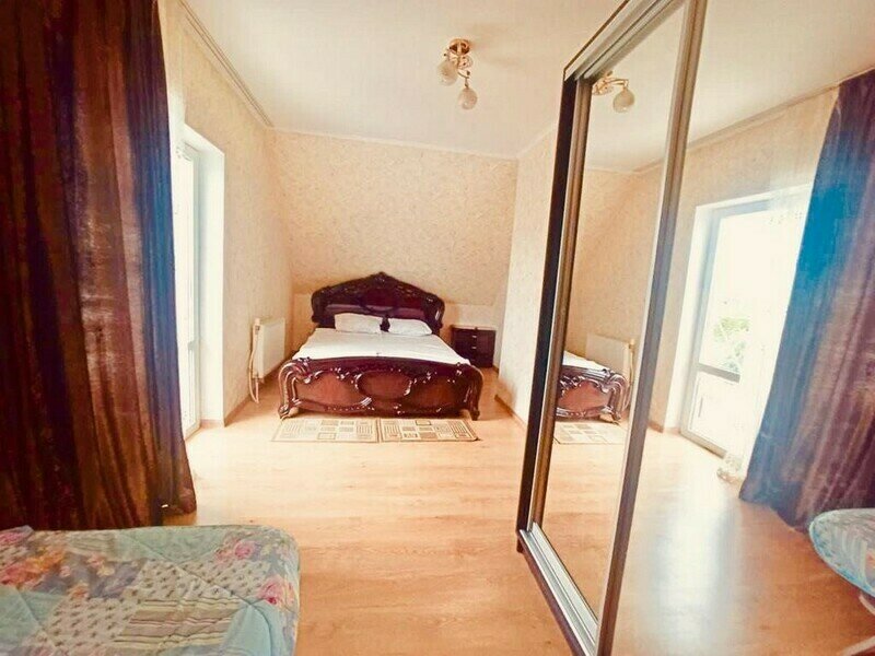 В коттедже 4 спальни, зал, кухня. Две ванных комнаты на первом и втором этаже. 4 сплит системы. А так же два балкона. Один с красивейшим видом на Сочи парк. Для коттеджа так же есть мангальная зона.