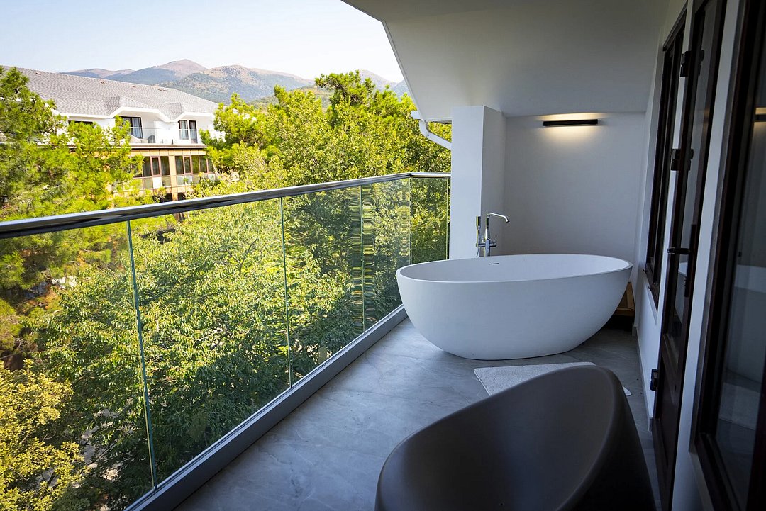 В корпусах представлены однокомнатные и двухкомнатные номера площадью от 16 до 62 м². Также для размещения доступны современные виллы премиум-класса с уютной атмосферой и панорамными окнами с видом на Черное море.