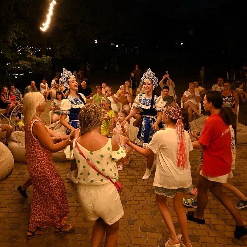 Детей ждёт специальная детская анимация, где юные гости смогут поучаствовать в разнообразных квестах, спортивных мероприятиях, творческих мастер-классах. А по вечерам мы смотрим кино под открытым небом и проводим шоу талантов!