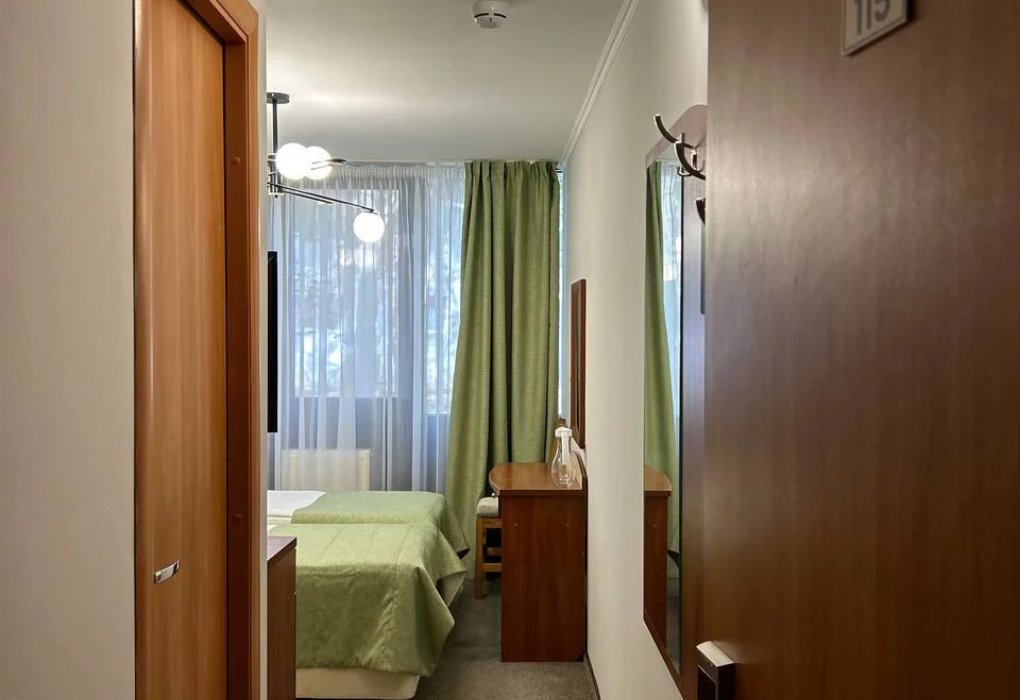 Однокомнатный номер площадью 18 квадратных метров. Две односпальные либо одна двуспальная кровать.