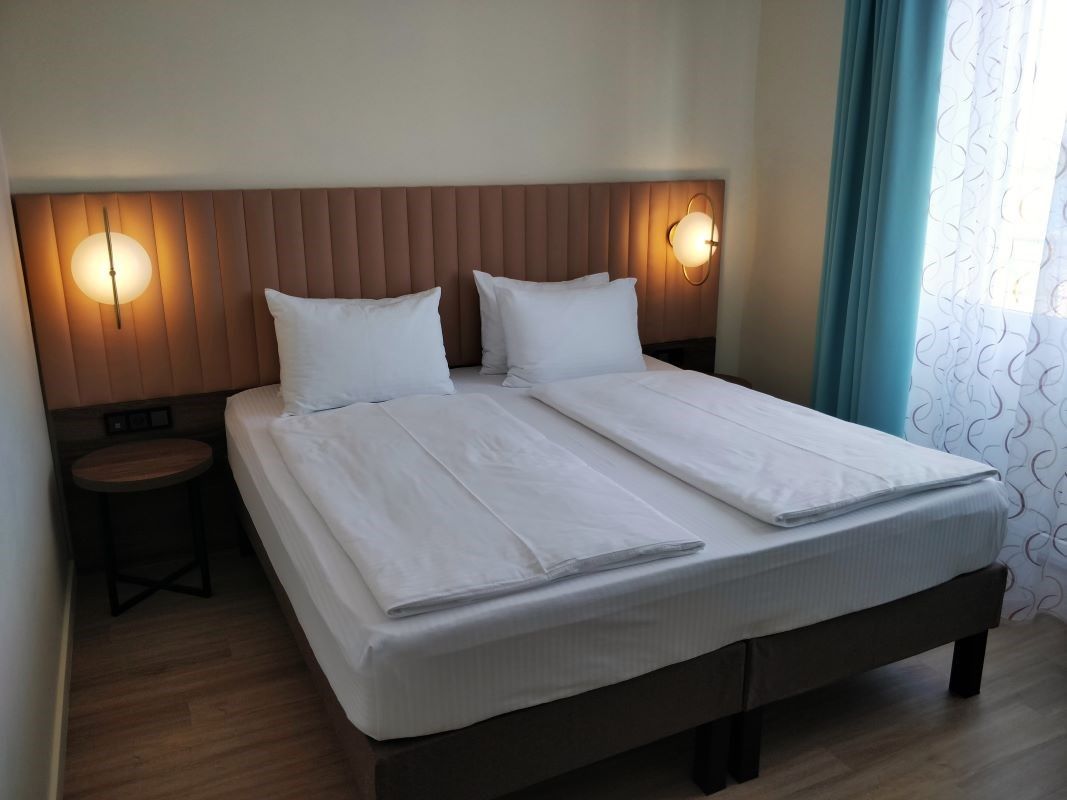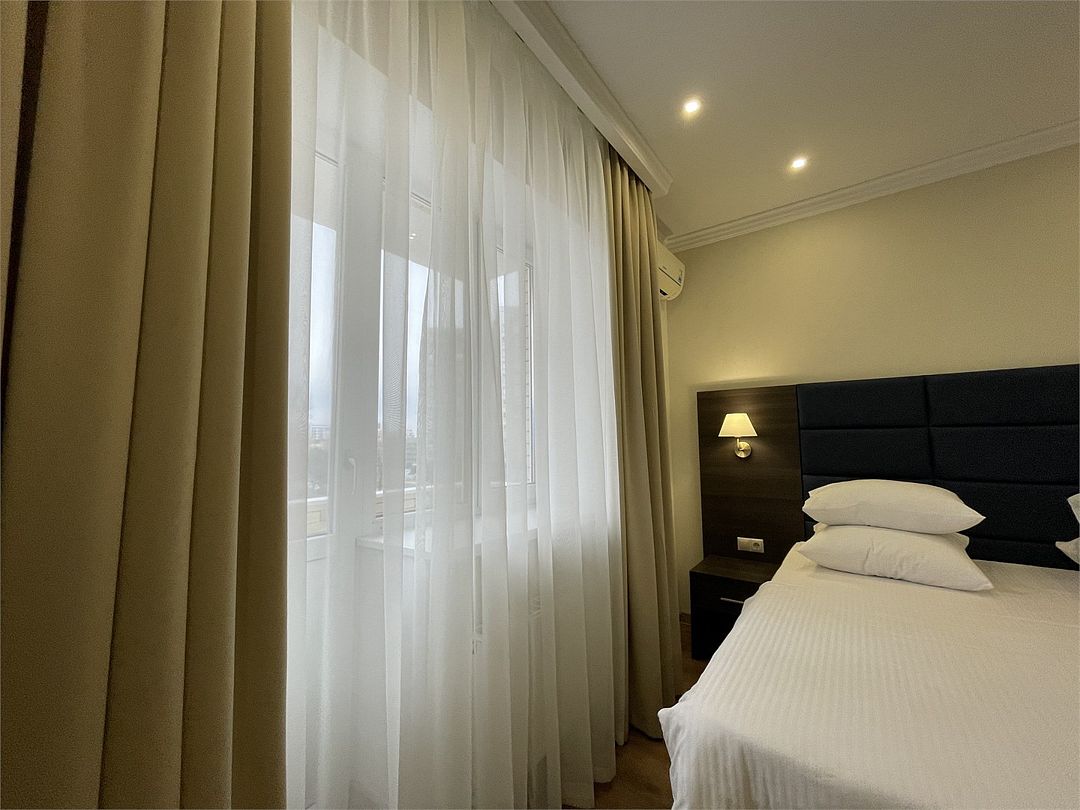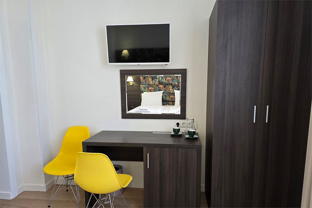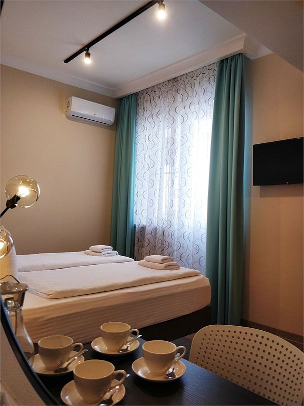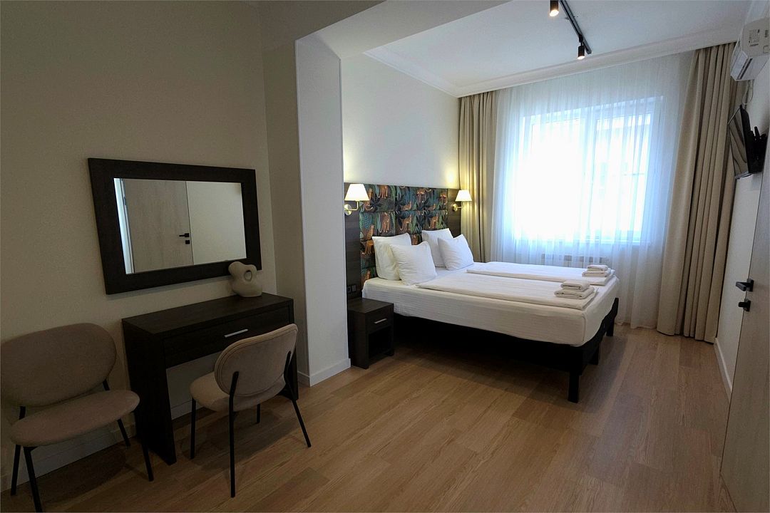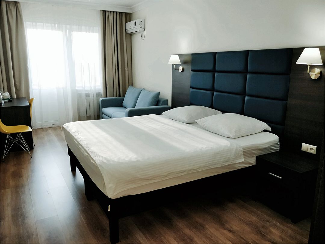 Стандарт Плюс - обновленный номер 19 квадратных метров. Современный интерьер, двуспальная кровать 180см или две кровати 90см, кондиционер, Wi-Fi, ТВ, рабочий стол, мини холодильник, балкон.Услуги и удобства