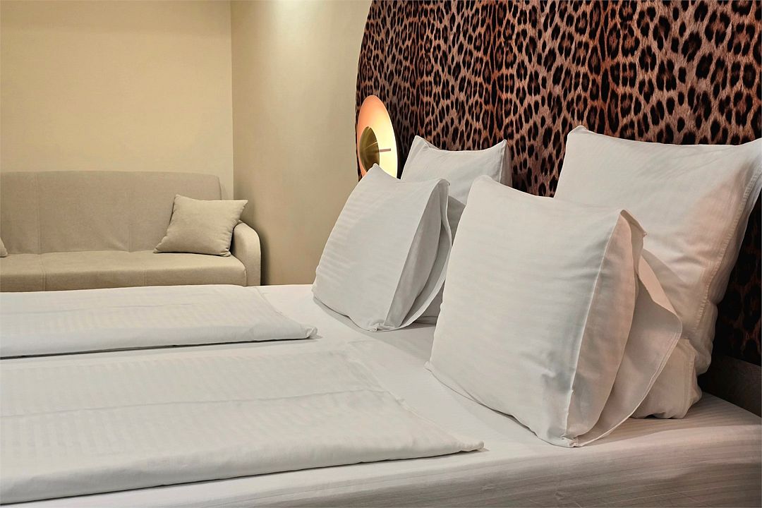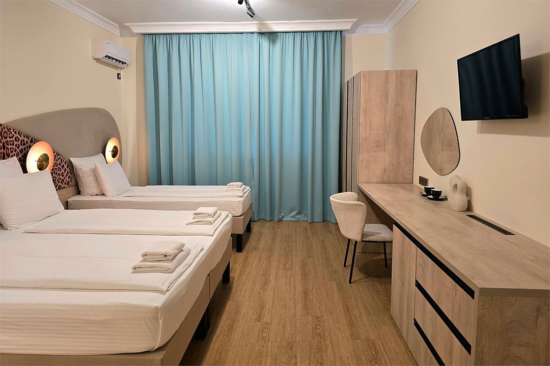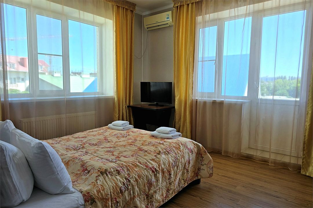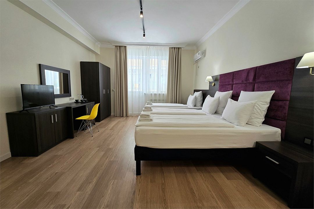 Семейный 2-комн. Плюс - просторный двухкомнатный семейный номер 35 м². Два телевизора, два кондиционера, собственный санузел, шторы блэкаут, балкон, Wi-Fi.Услуги и удобства