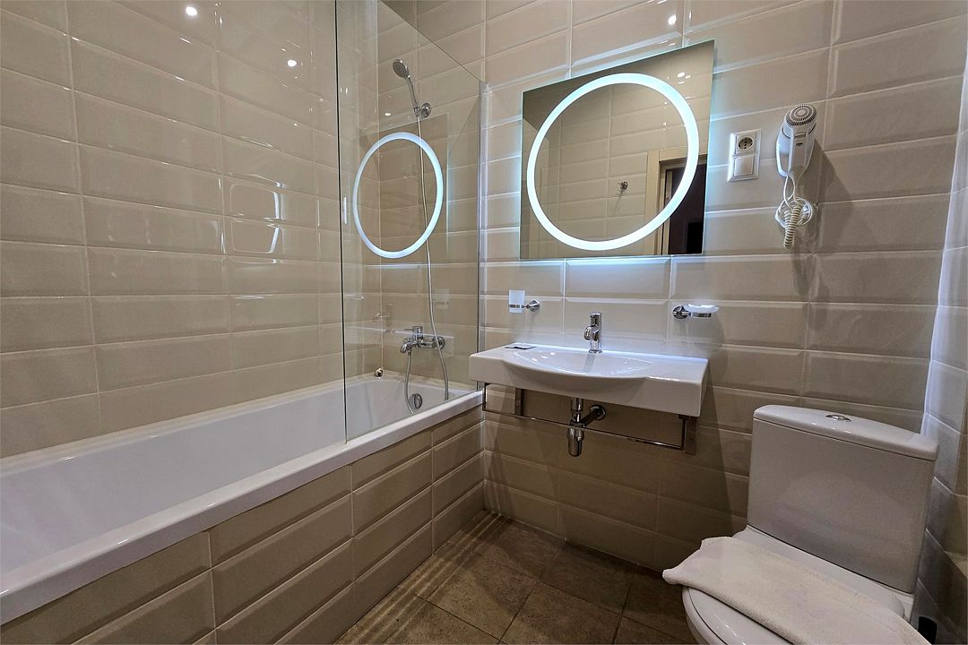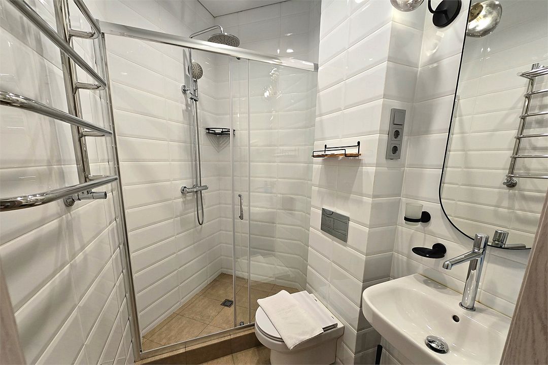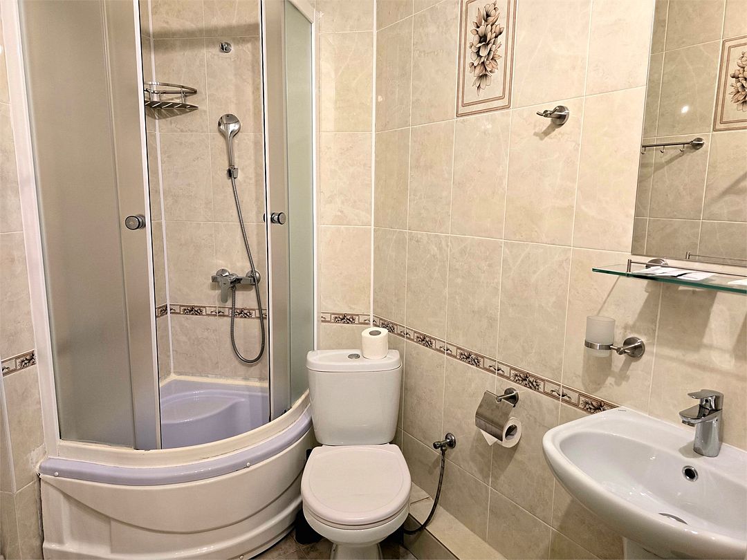 телевизор, Wi-Fi, холодильник, кондиционер, ванная комната, душевая кабина, банные полотенца, гигиенические средства, балкон, унитаз, раковина, отопление, общественный бассейн, мылоВ гостиничном номере