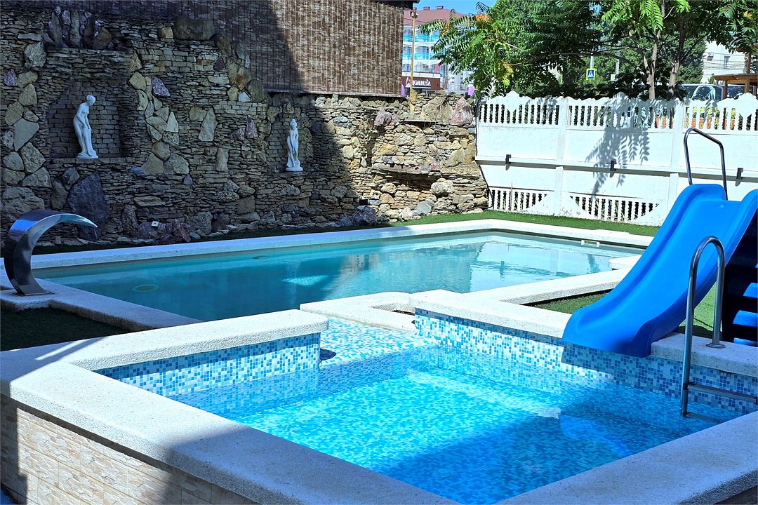 Тип бассейна: открытый бассейнВода в бассейне: подогреваемый бассейнРядом с бассейном: шезлонгиДетский бассейн