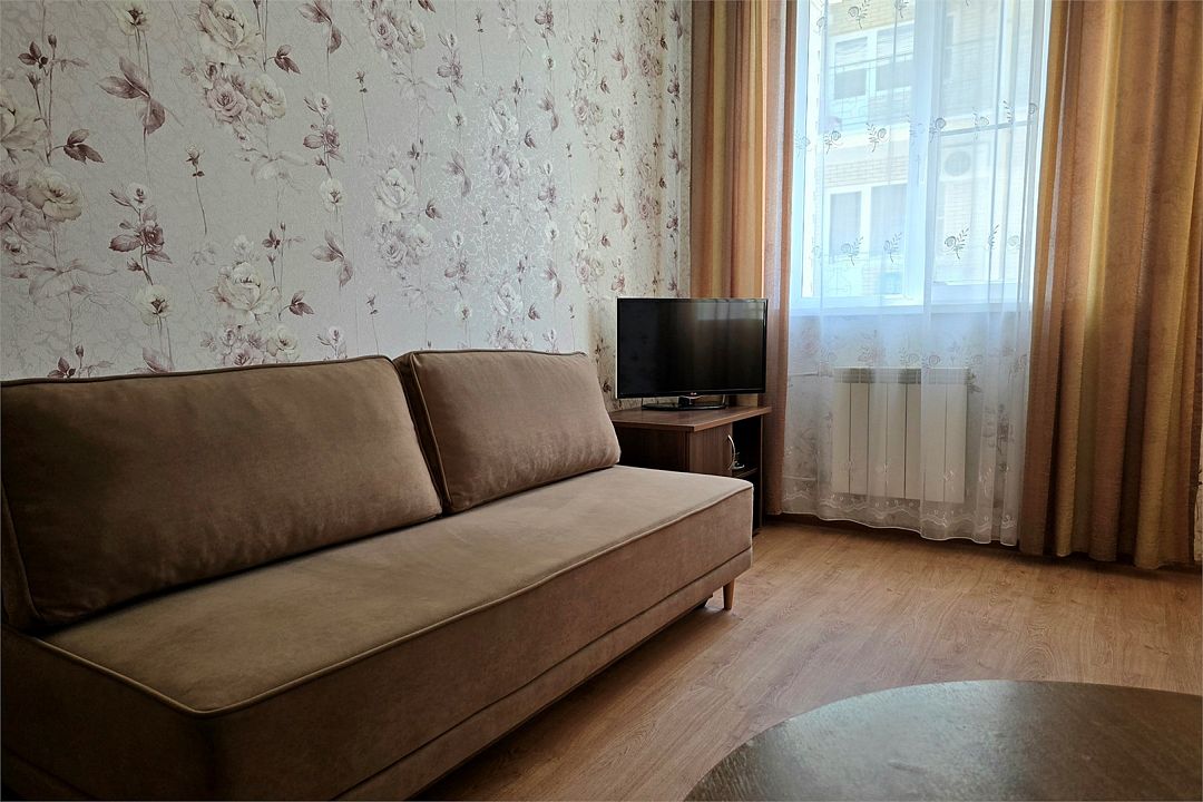 Квартира с кухней и балконом. Санузел с ванной и феном. В номере две комнаты это кухня и спальня. В 2021 году проведена полная реконструкция. Новая мебель. Современный дизайн. Мягкие прикроватные панели с светильниками у изголовья. Кухня оснащена всем необходимым: газовая плита, микроволновая печь, чайник, стиральная машина, обеденный стол, кастрюли, сковорода, посуда для 4-х человек. В комнате расположена гладильная доска с утюгом. Подходит для проживания 1- 4-х гостей.Услуги и удобства