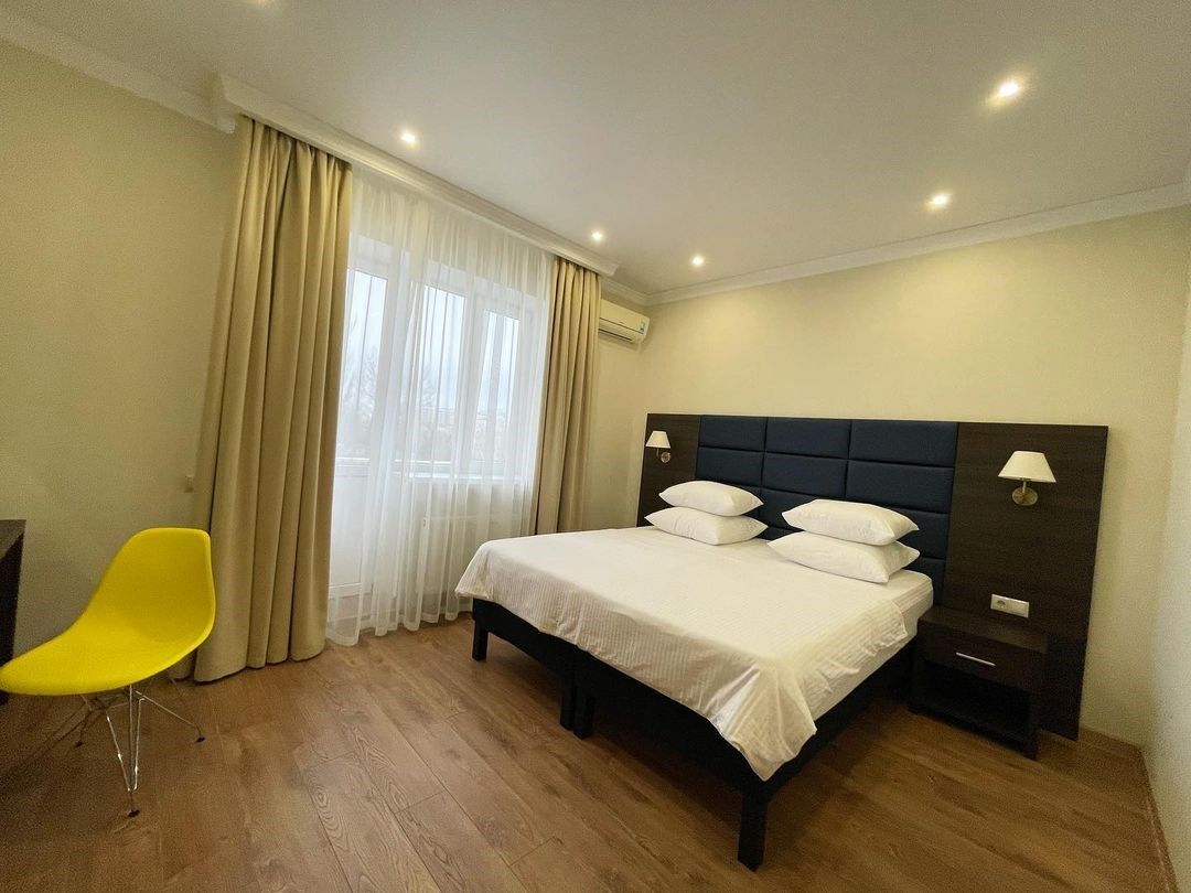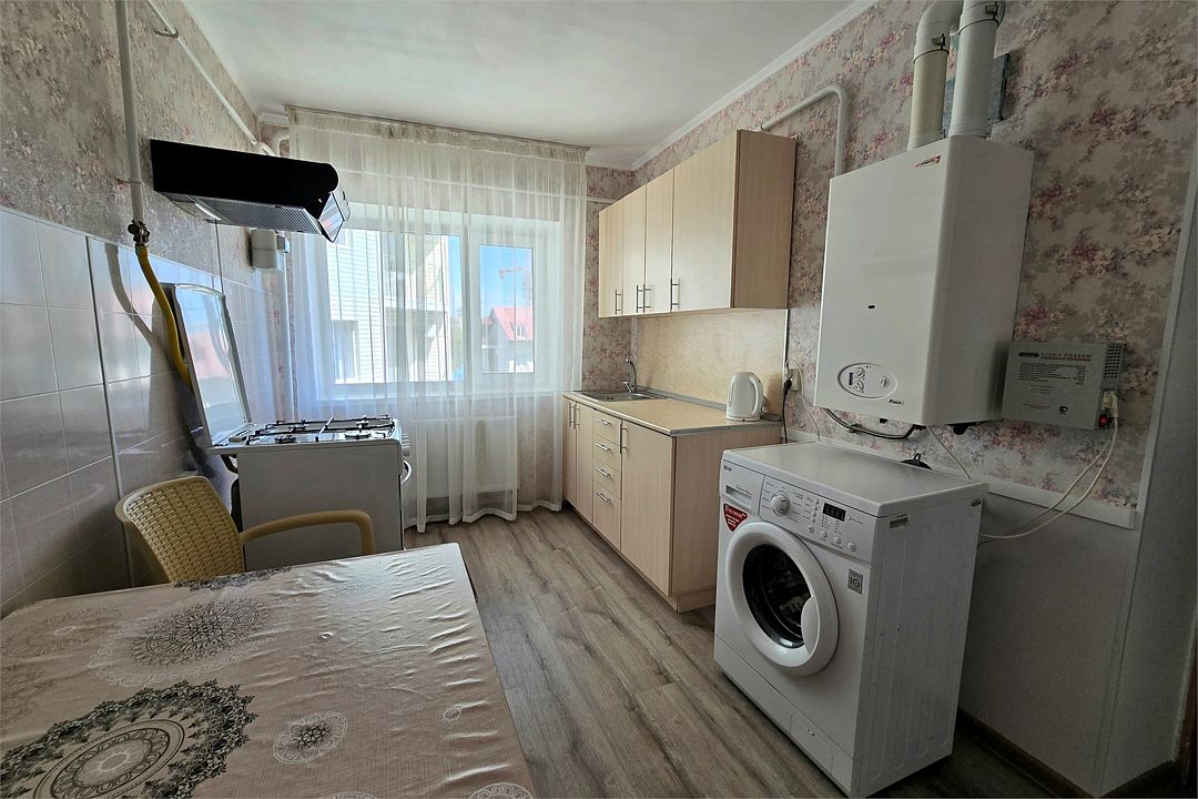 В корпусе нет лифта. Квартира состоит из прихожей, кухни и комнаты с двуспальной кроватью. В номере две комнаты это кухня и спальня. Кухня оснащена стиральной машиной, газовой плитой.Услуги и удобства
