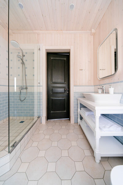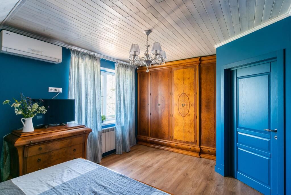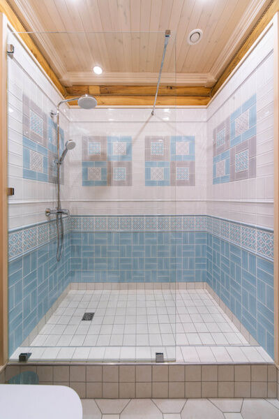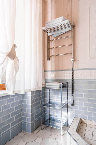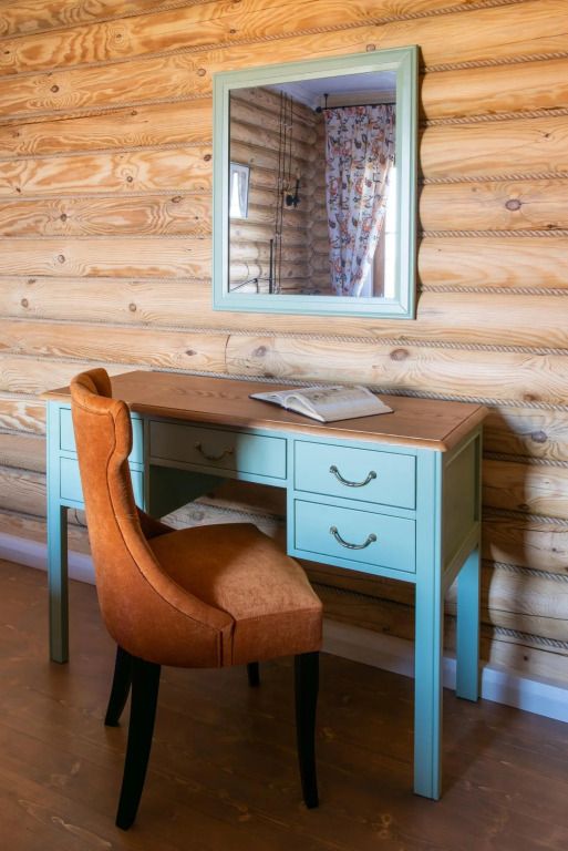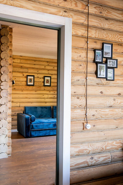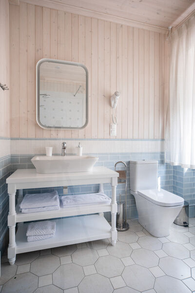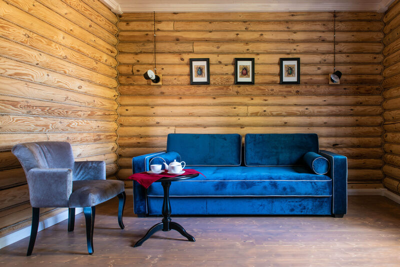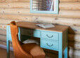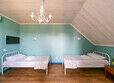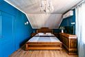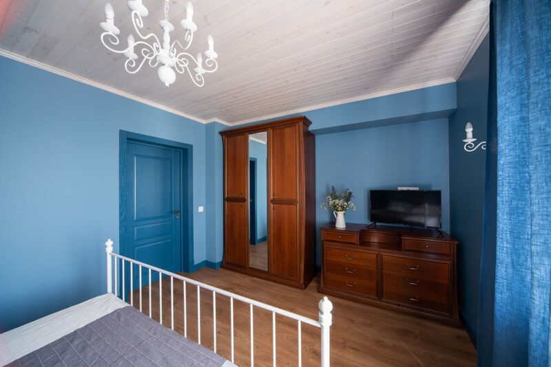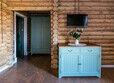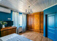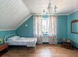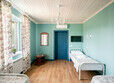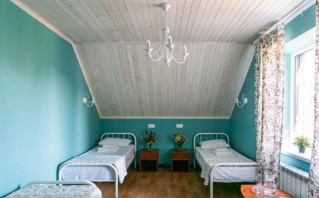 Номер «Голубой» площадью 14,87 кв.м. для размещение пар с детьми. В нем располагается одна двухместная кровать. Комната рассчитана на семью из 4-х человек. При необходимости возможно размещение двух детских спальных места. Санузел и душ находятся отдельно на этаже. Окно выходит на центральную часть территории усадьбы. Комната светлая и солнечная.