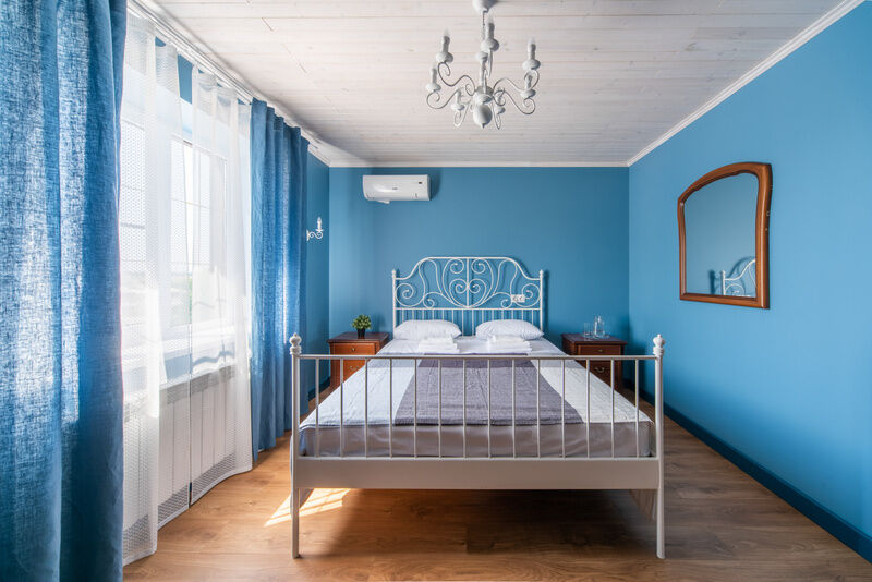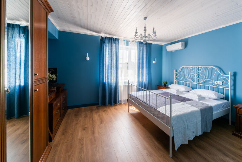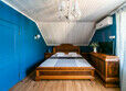 Номер «Синий» площадью 16,99 кв.м. В нем располагается одна большая двухместная кровать. Комната рассчитана на 2 гостя. При необходимости возможно размещение дополнительного спального места.