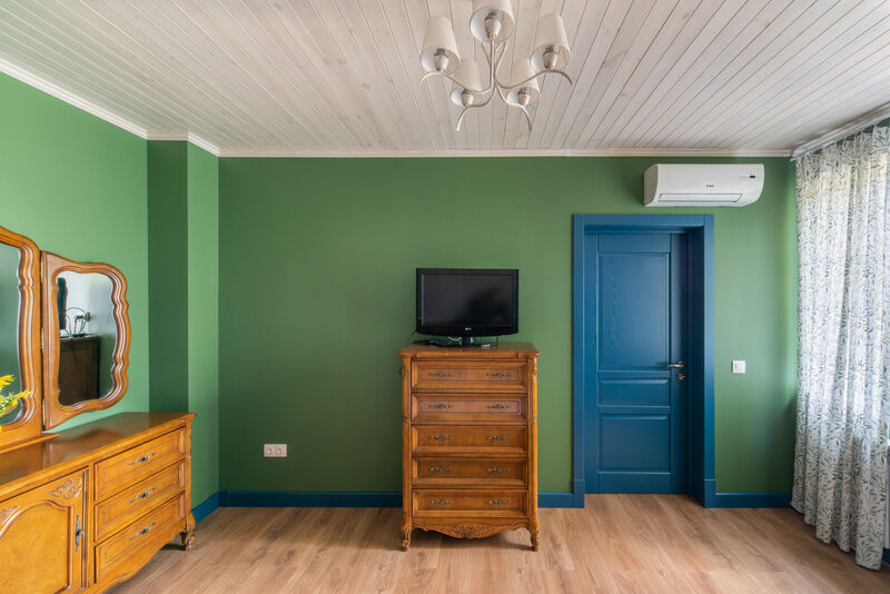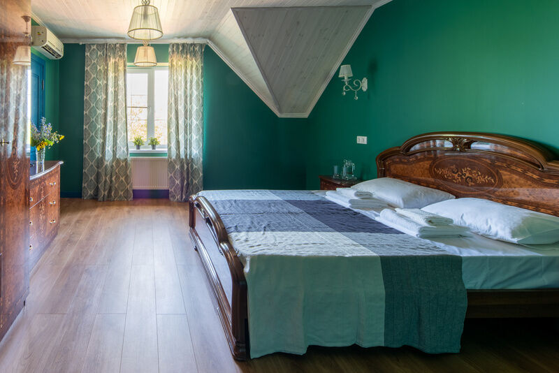Номер «Зеленый» площадью 18,80 кв.м. для размещение пар с детьми. В нем располагается одна двухместная кровать. Комната рассчитана на семью из 4-х человек. При необходимости возможно размещение двух детских спальных места. Санузел и душ находятся в номере. Окна в комнате и санузле выходят на бескрайние кубанские поля.