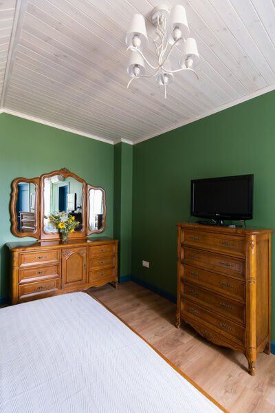 Номер укомплектован антикварной мебелью из дерева. Санузел и душ находятся отдельно на этаже. Окно выходит на большой гостевой дом.