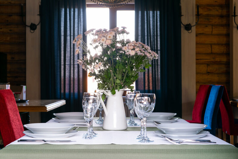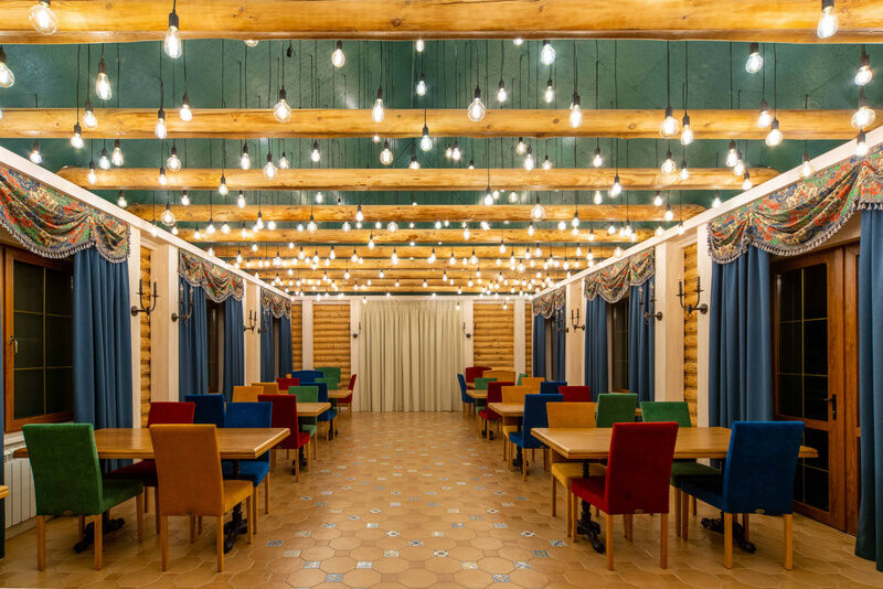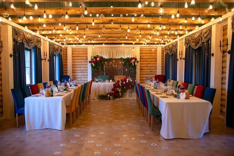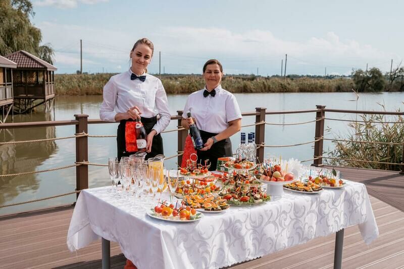 Гостиничный комплекс располагает уютным малым банкетным залом на 40 персон и большим банкетным залом с открытой летней террасой на 150 человек.