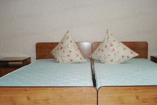 В номере: удобные кровати, прикроватные тумбочки, шкаф, телевизор, холодильник, электрический чайник. Санузел (душевая, туалет) находится на этаже.