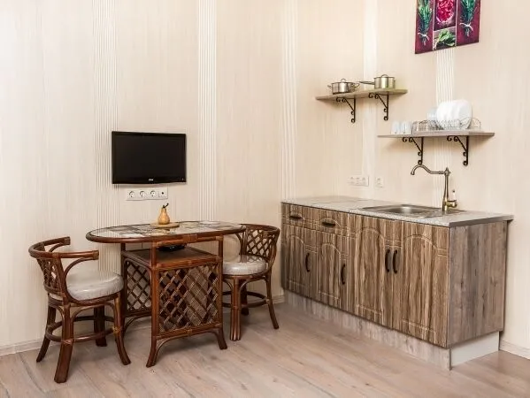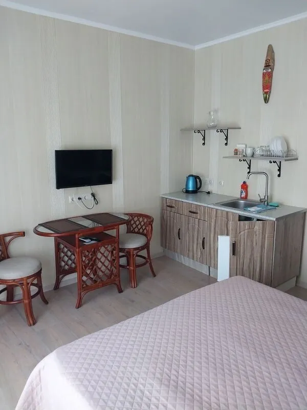 Двухместный номер-студия с двуспальной кроватью, мини-кухней и собственной ванной комнатой. Номер предназначен для некурящих гостей.