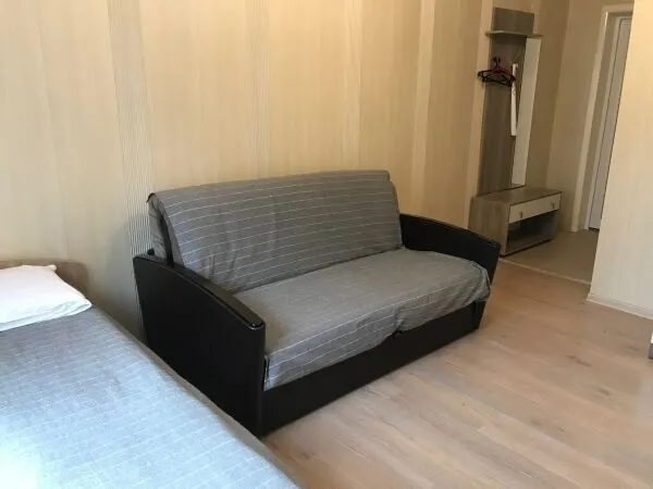 Четырехместный номер-студия с двуспальной и односпальной кроватью, мини-кухней и собственной ванной комнатой.
