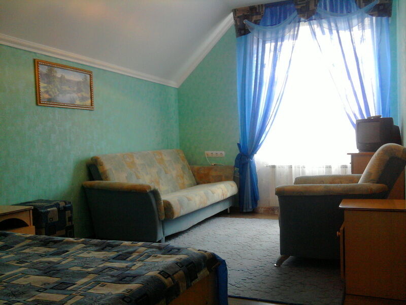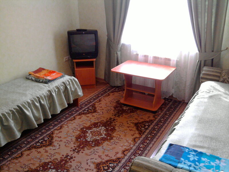 В номере: TV, сплит-система, стол, шкаф, холодильник, две односпальных кровати, диван-кровать. Санузел в номере.