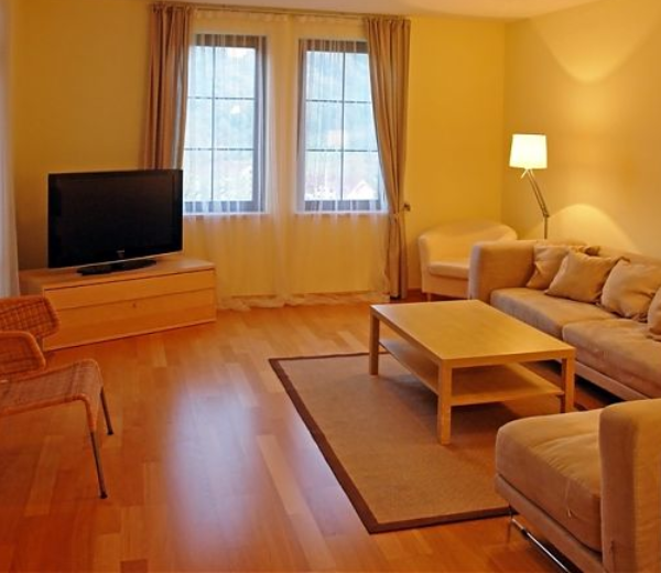 Можно выбрать апартаменты-студио с открытой планировкой или более просторные апартаменты с 2 или 3 спальнями. Все апартаменты красиво оформлены в современном стиле. Во всех апартаментах обустроены кухня, гостиная и столовая. Многие апартаменты выходят на собственный балкон, с которого открывается прекрасный вид на окрестные леса и горы.
