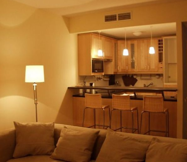Во всех квартирах есть кухня и объединённое пространство гостиной и спальни. Ванная комната - с душем. В стандартное оснащение каждой квартиры входит кондиционер, фен, электрический чайник, телевизор, гладильная доска и утюг, бесплатный Интернет Wi-Fi.