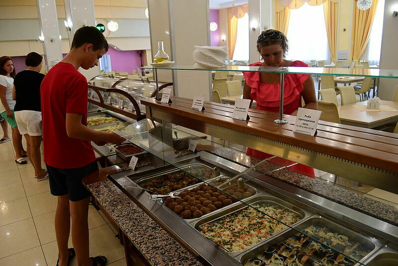 На территории работает ресторан с двумя обеденными залами, в первом корпусе есть библиотека. Также в распоряжении гостей открытый уличный бассейн, спортивные площадки, футбольное поле и теннисный корт. Для гостей регулярно устраиваются развлекательные мероприятия, детей веселят аниматоры, проходят детские дискотеки, а для малышей организована игровая площадка с качелями.