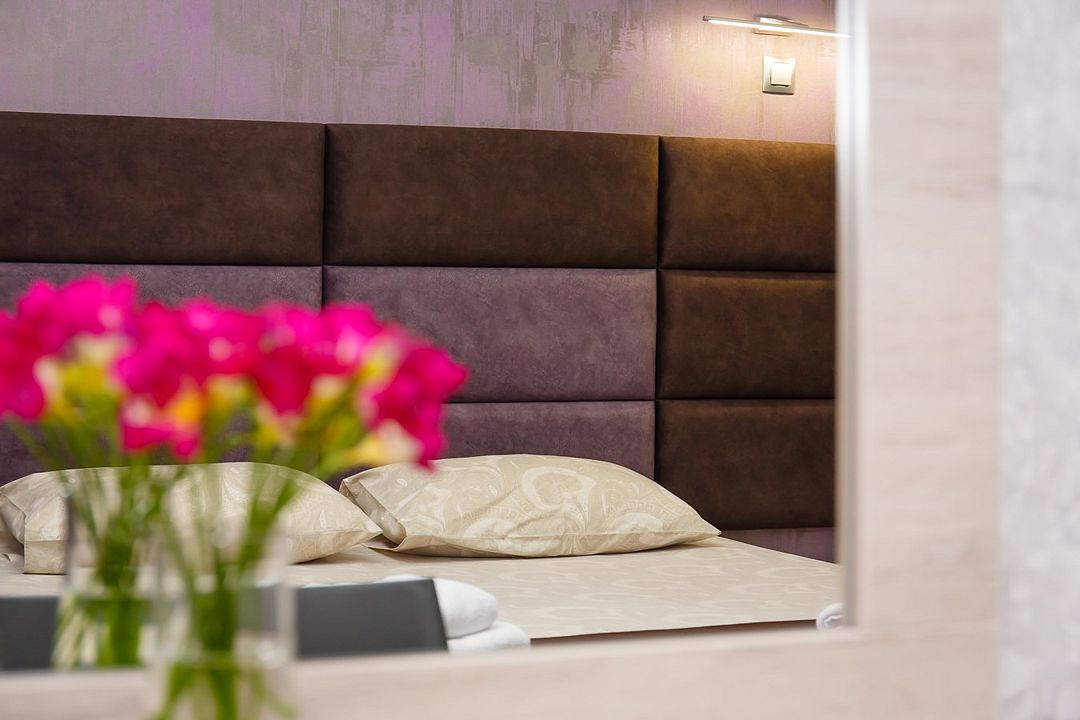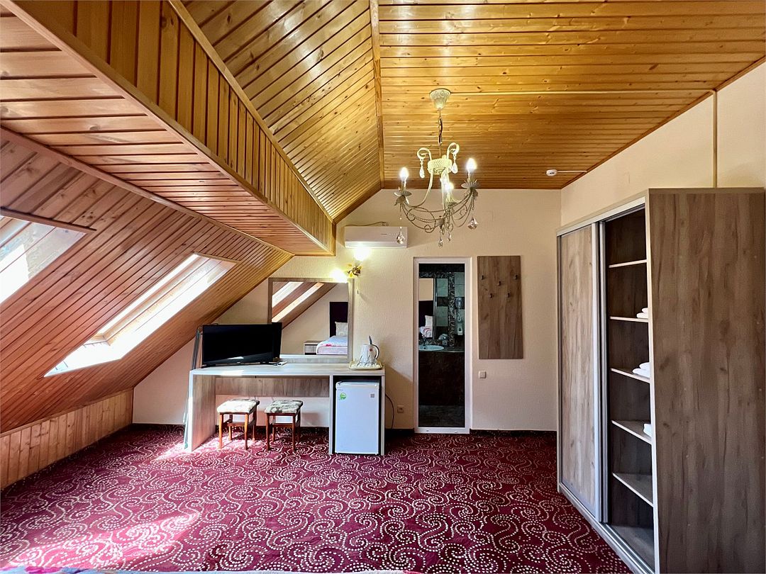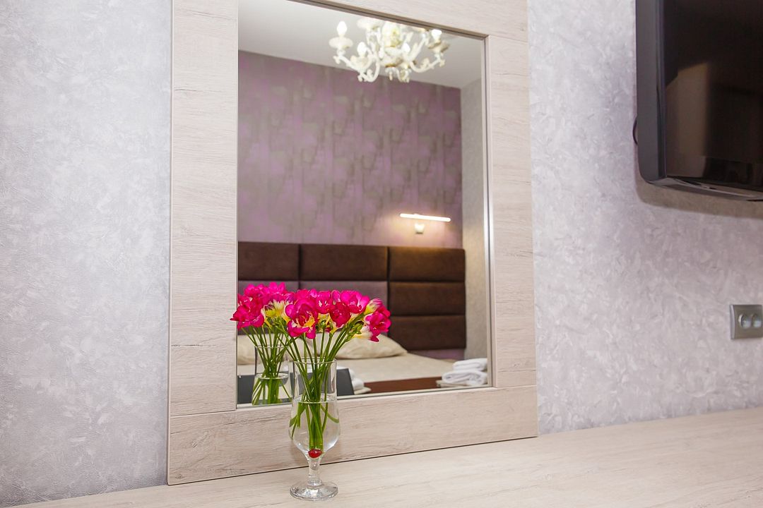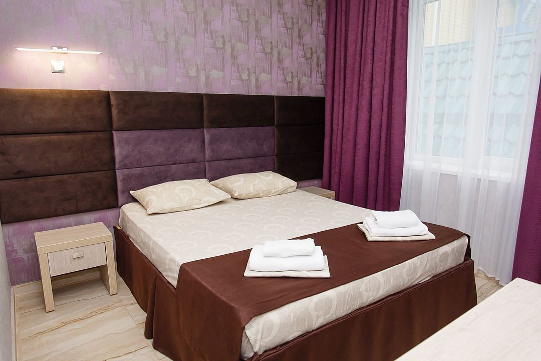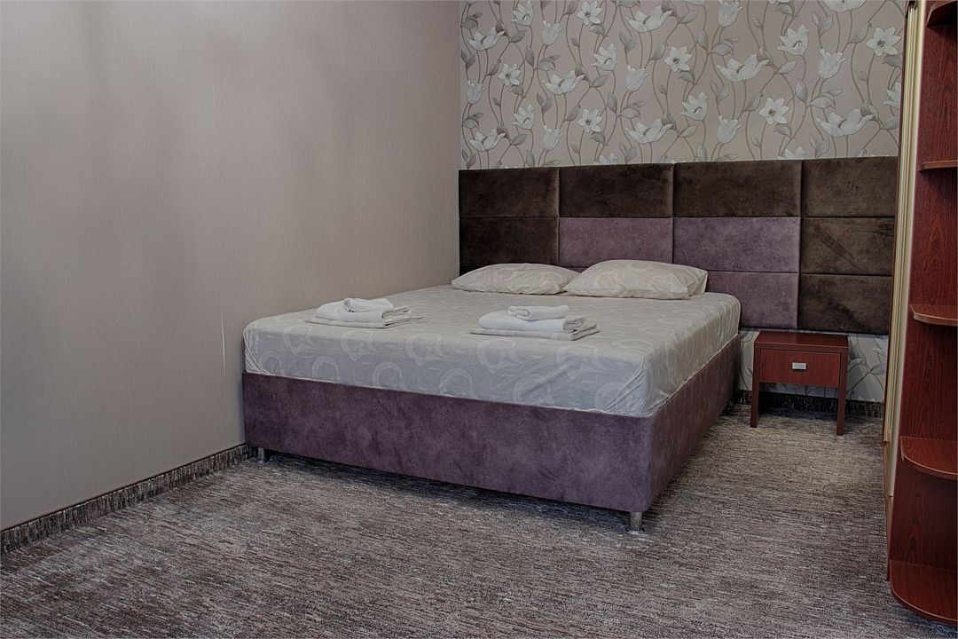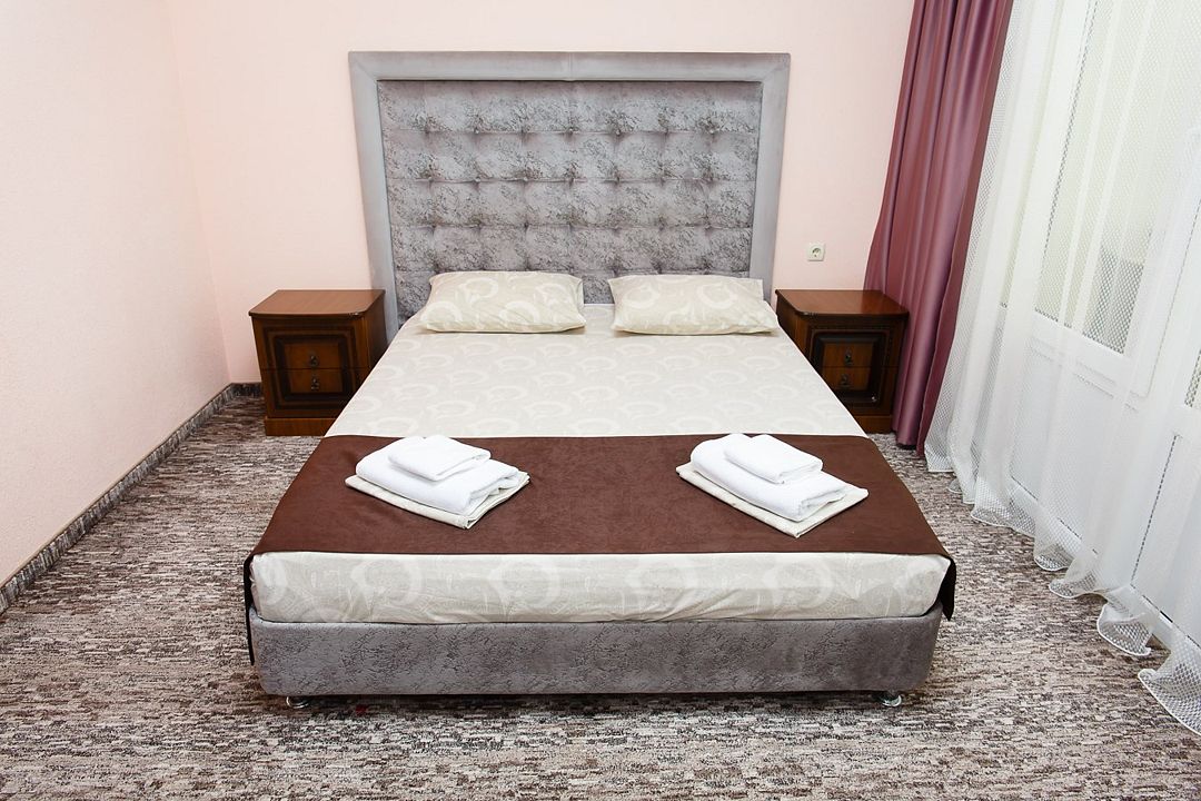 Стандарт+ современный комфортабельный номер, рассчитан на проживание до 3-х человек и возможно размещение ребенка без предоставления места. Номера располагаются на 3-м и 5-м этажах, вид из окна на соседний отель. Во всех номерах: двуспальная и односпальная(или софа) кровати, телевизор, кондиционер, мини-холодильник, сейф, чайник, халаты, санузел(душ, туалет, полотенца, фен), туалетные принадлежности(туалетная бумага, мыло, шампунь, гель для душа).Услуги и удобства
