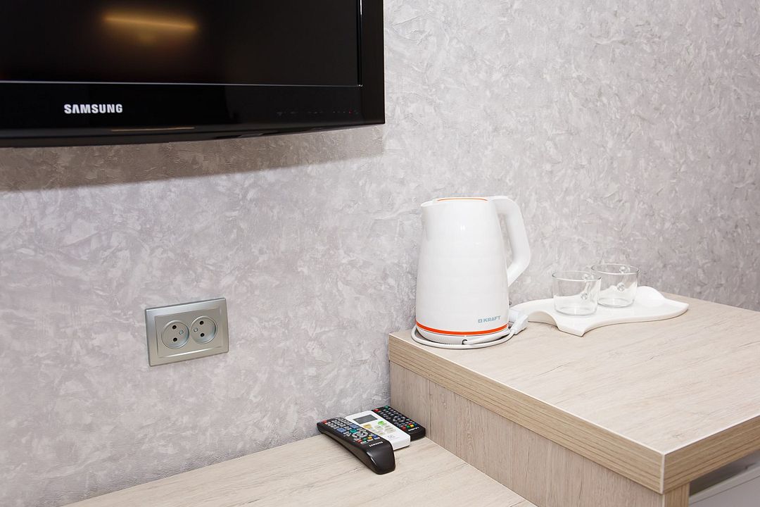 Wi-Fi, кондиционер, светильник, фен, утюг, санузел, халаты, банные полотенца, тапочки, двуспальная кровать, односпальная кровать, тумбы, шкаф для одежды, вешалки, зеркало, сейф, чайник, унитаз, душ, вид на город, туалет, сплит-система, цифровое тв, диван-кровать, раскладной диван, телевизор с плоским экраном, мини-холодильник, шкаф-купе, рабочий стол, двухъярусная кровать, можно с питомцамиВ гостиничном номере
