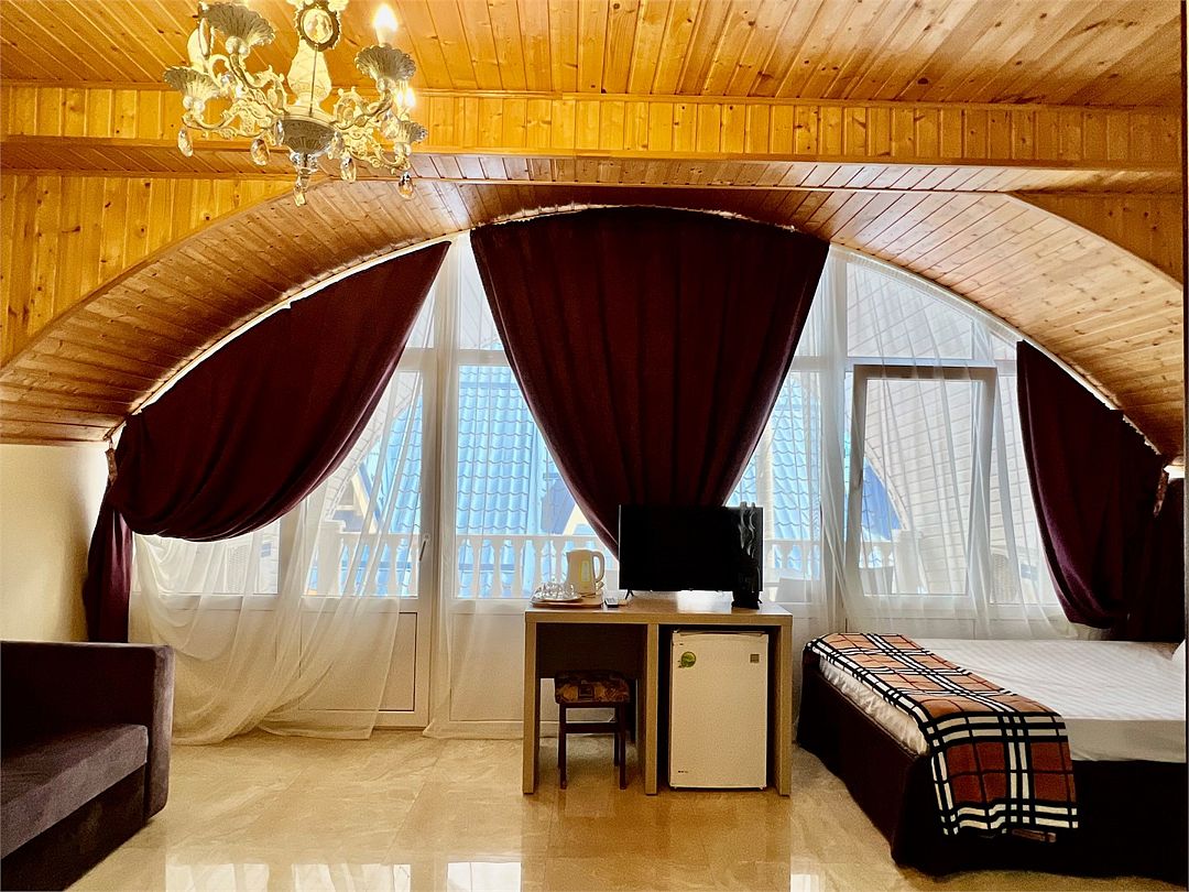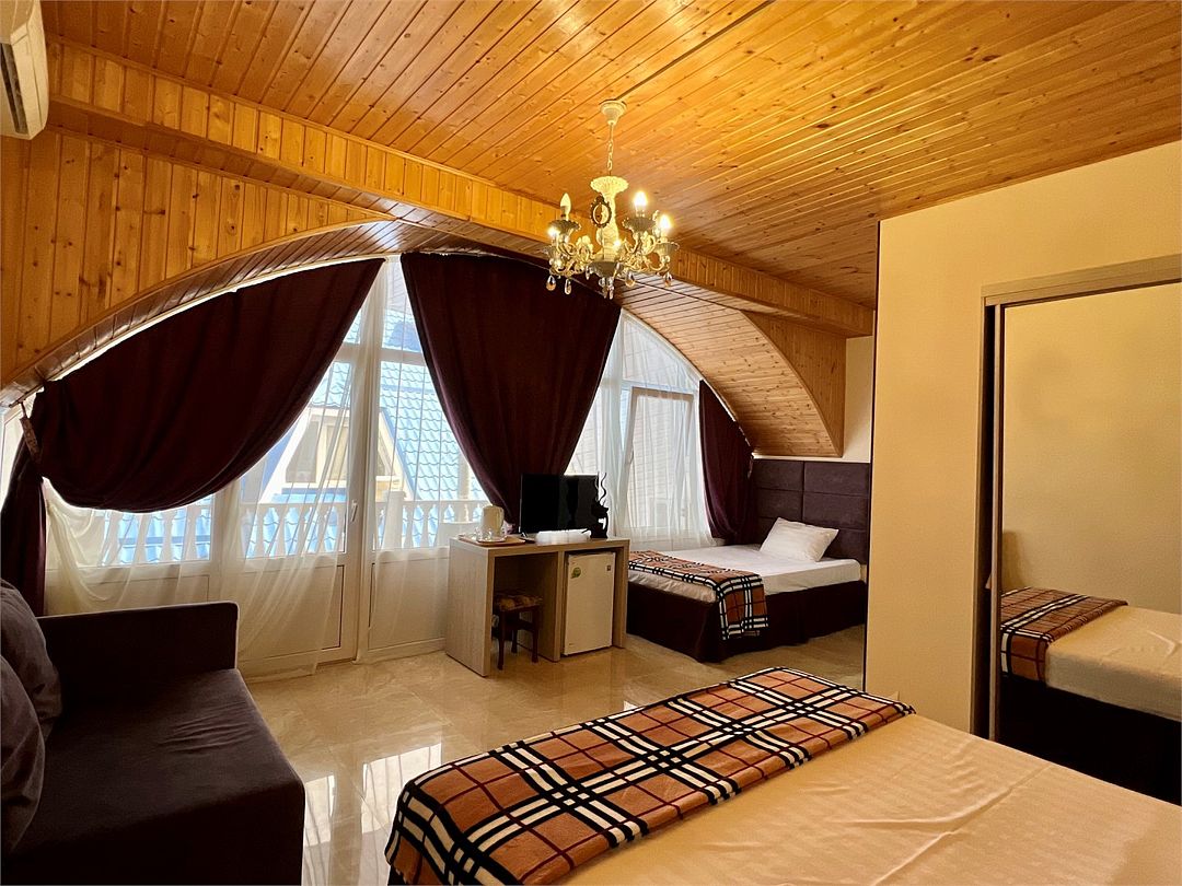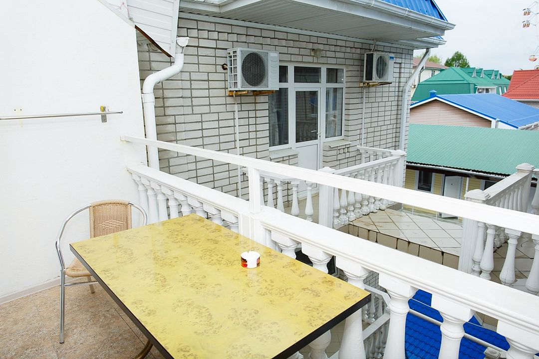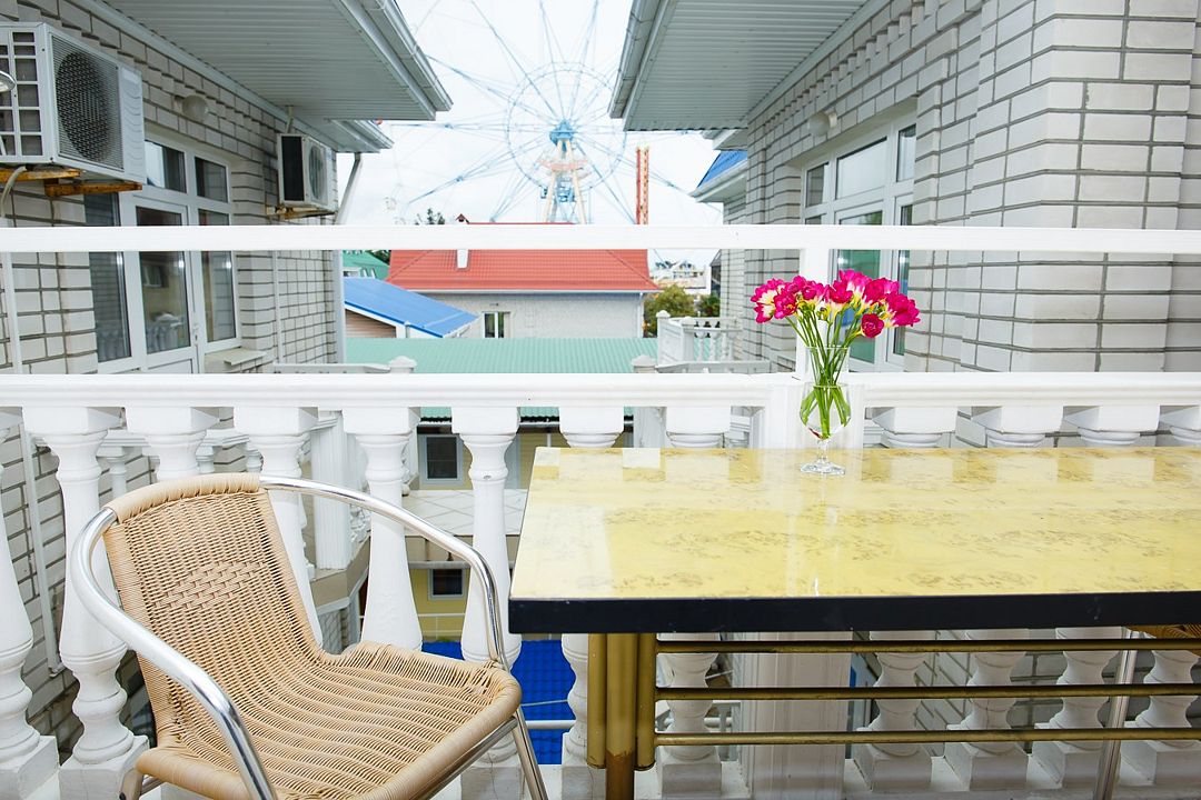 Стандарт+ с балконом современный комфортабельный номер, рассчитан на проживание до 3-х человек и возможно размещение ребенка без предоставления места. Номера располагаются на 3-м и 4-м этажах, балкон с видом на соседний отель. Во всех номерах: двуспальная и односпальная(или софа) кровати, телевизор, кондиционер, мини-холодильник, сейф, чайник, халаты, санузел(душ, туалет, полотенца, фен), туалетные принадлежности(туалетная бумага, мыло, шампунь, гель для душа).Услуги и удобства