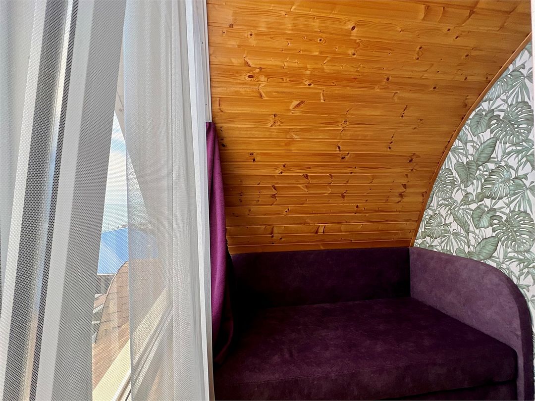 Комфорт с балконом боковой вид на море современный комфортабельный номер, рассчитан на проживание до 5-х человек. Номера располагаются на 4-м и 5-м этажах, балкон с боковым видом на море. Во всех номерах: Двуспальная кровать, двухъярусный диван-кровать, телевизор, кондиционер, мини-холодильник, сейф, чайник, халаты, санузел(душ, туалет, полотенца, фен), туалетные принадлежности (туалетная бумага, мыло).Услуги и удобства