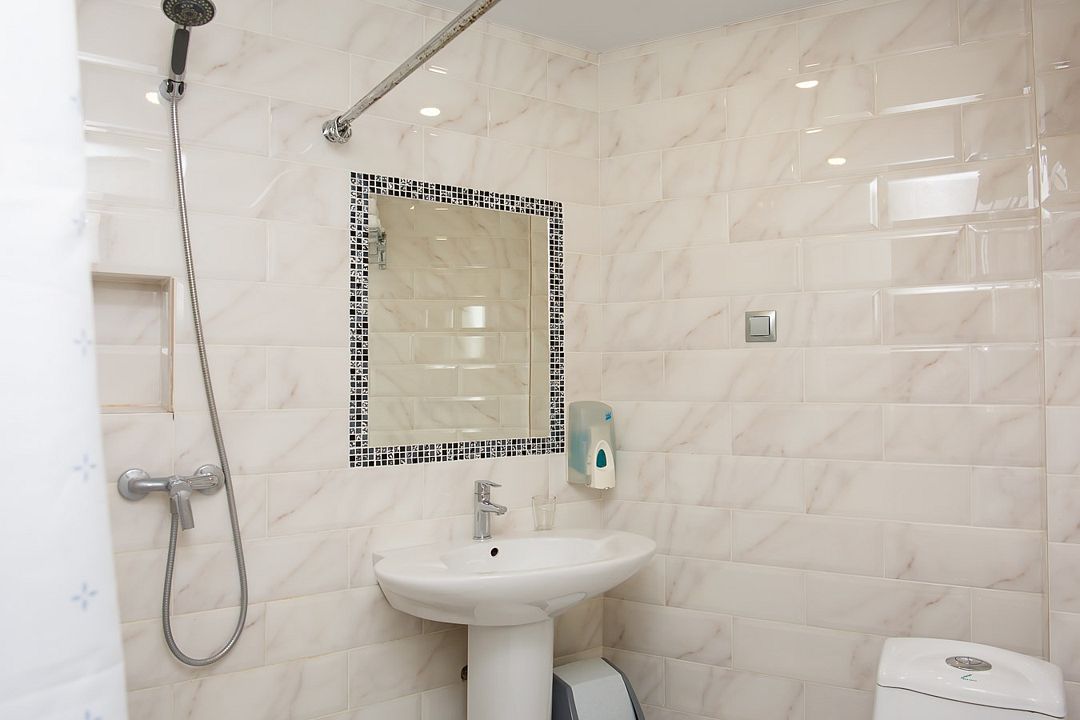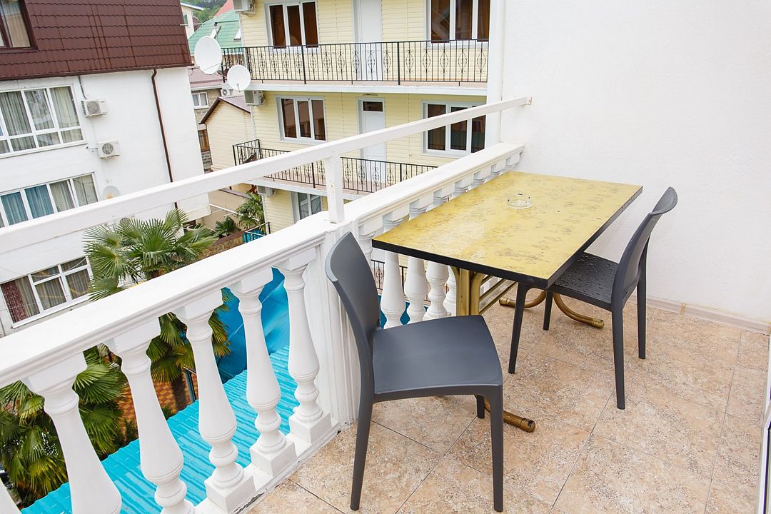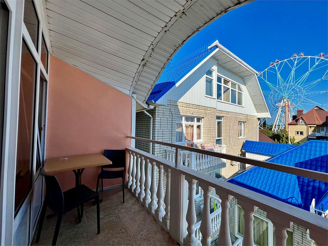 Комфорт с балконом современный комфортабельный номер, рассчитан на проживание до 5-х человек. Номера располагаются на 3-м, 4-м и 5-м этажах, балкон с видом на соседний отель. Во всех номерах: Двуспальная кровать, двухъярусный диван-кровать, телевизор, кондиционер, мини-холодильник, сейф, чайник, халаты, санузел(душ, туалет, полотенца, фен), туалетные принадлежности(туалетная бумага, мыло, шампунь, гель для душа).Услуги и удобства