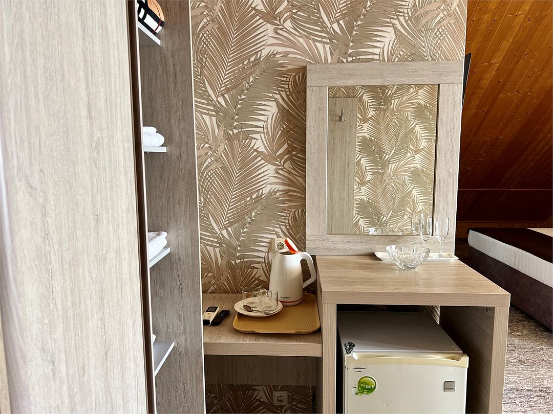 Wi-Fi, кондиционер, светильник, фен, утюг, халаты, банные полотенца, тапочки, балкон с красивым видом, двуспальная кровать, шкаф для одежды, вешалки, зеркало, сейф, чайник, унитаз, раковина, душ, вид на море, туалетные средства, туалет, сплит-система, цифровое тв, диван-кровать, раскладной диван, телевизор с плоским экраном, мини-холодильник, шкаф-купе, рабочий стол, двухъярусная кровать, можно с питомцамиВ гостиничном номере