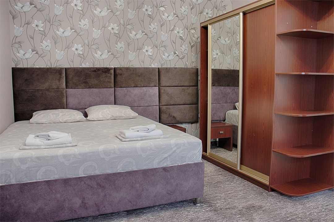 Wi-Fi, светильник, фен, утюг, душевая кабина, санузел, банные принадлежности, банные полотенца, двуспальная кровать, две односпальные кровати, шкаф для одежды, вешалки, багажная тумба, зеркало, чайник, унитаз, душ, вид на город, стол, туалетные средства, туалет, сплит-система, цифровое тв, телевизор с плоским экраном, шкаф-купе, можно с питомцамиВ гостиничном номере