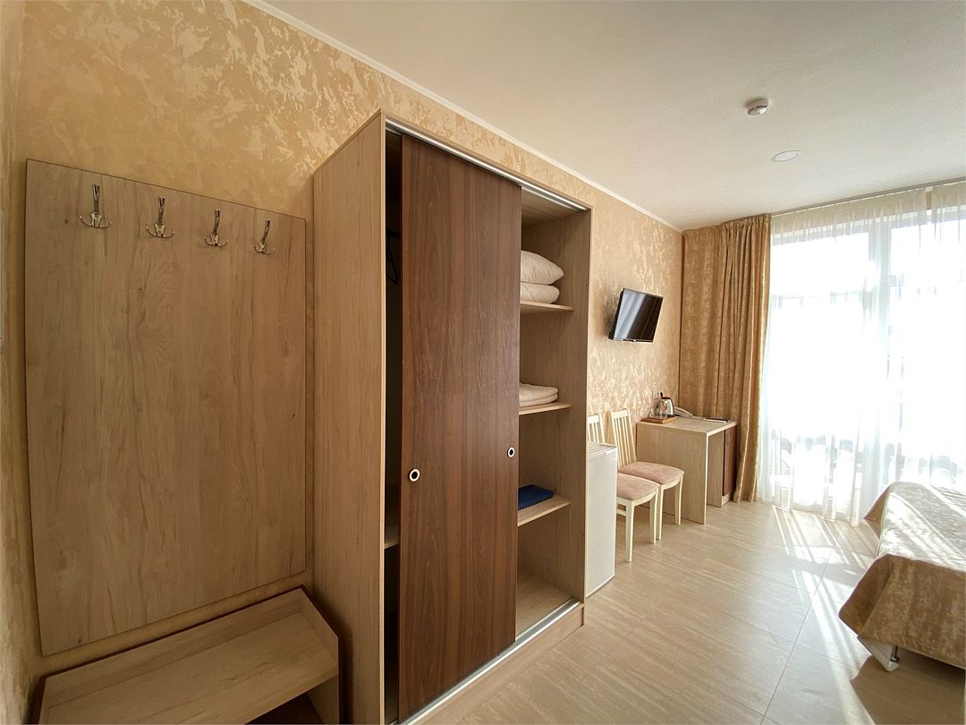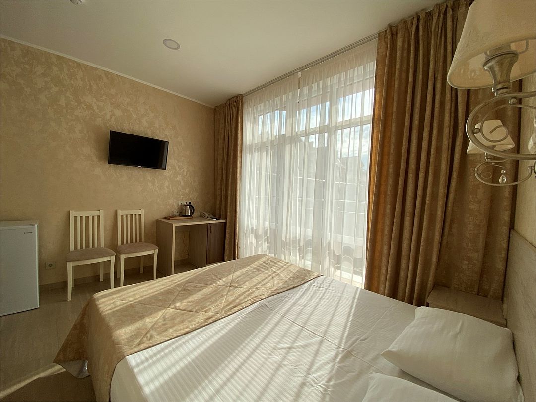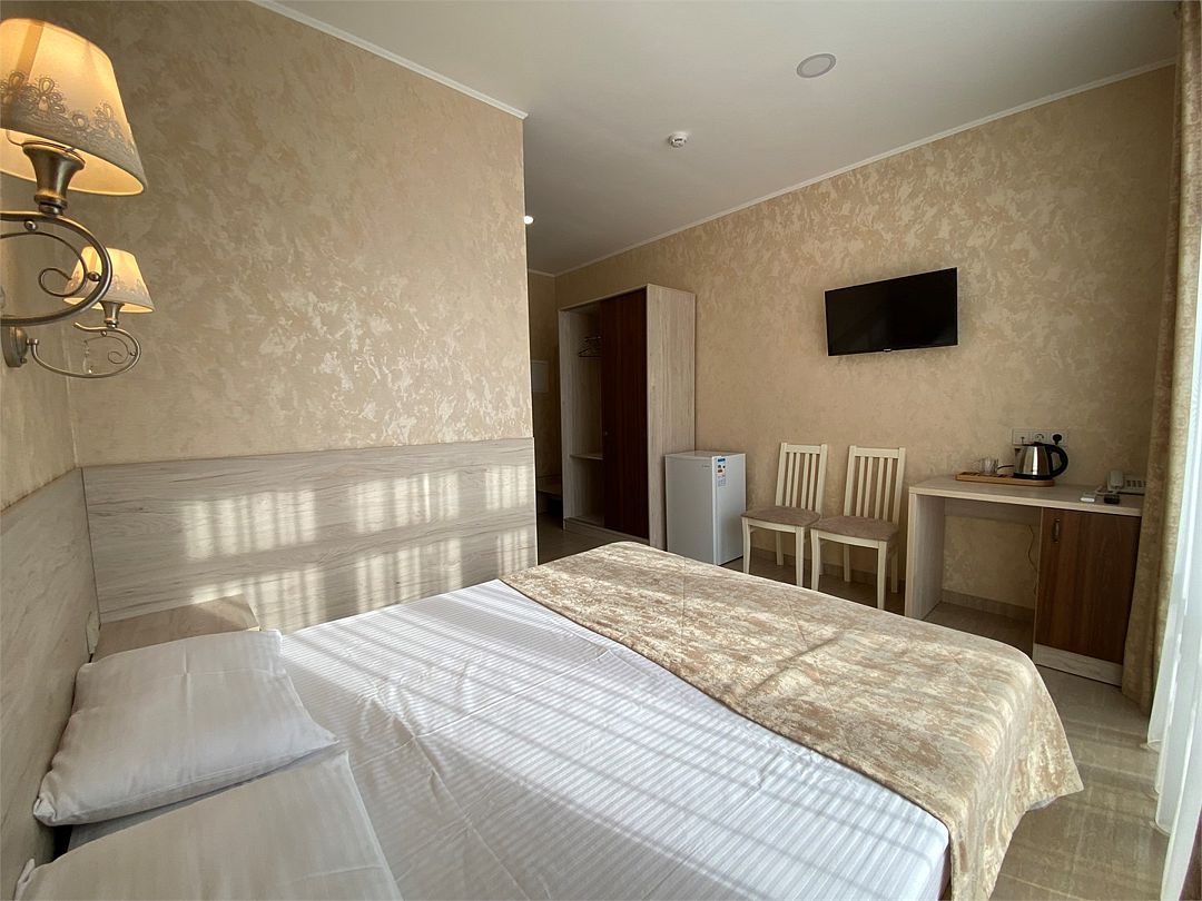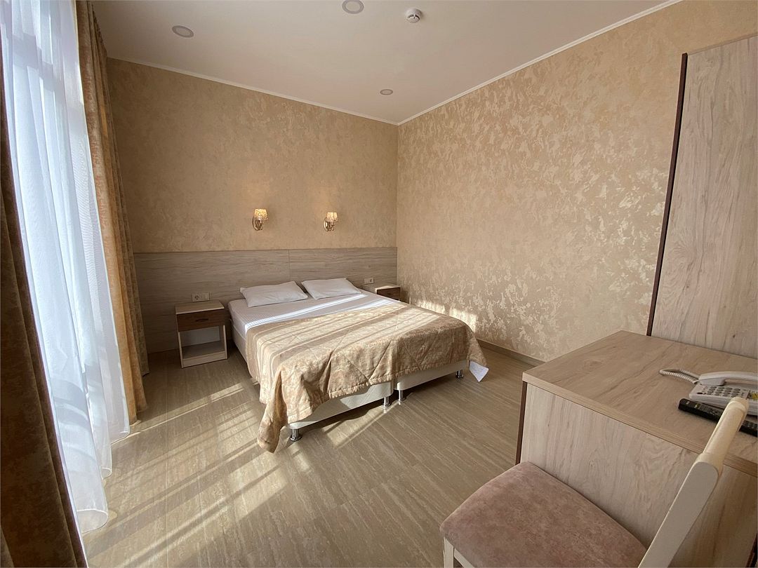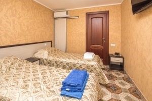 Номер стандарт, 2х местный с одной двуспальной или с двумя раздельными кроватями без балкона. Все номера расположены в 3х этажном корпусе №1 "Кипарис". На этаже есть общий балкон с сушилками для белья и гладильные принадлежности. Номера для НЕ курящих. Размещение с животными ЗАПРЕЩЕНО!Услуги и удобства