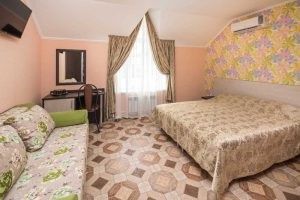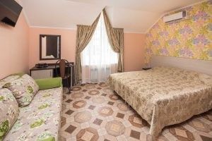 Семейный номер, в трехэтажном корпусе "Каштан" с балконом и видом на бассейн. С одной двуспальной кроватью, одной односпальной кроватью и диван-кроватью или тремя односпальными кроватями и диван-кроватью. Номера для НЕ курящих. Размещение с животными ЗАПРЕЩЕНО!Услуги и удобства