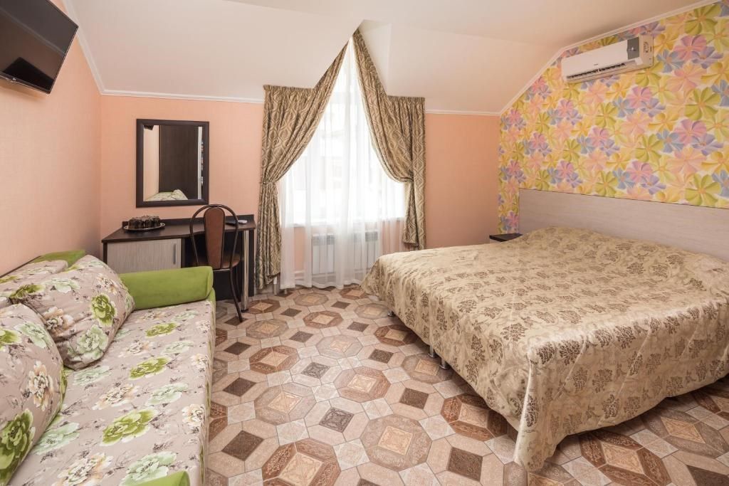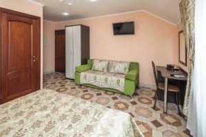 Номер стандарт 4х местный с одной двуспальной кроватью и диван-кроватью или двумя односпальными кроватями и диван-кроватью. Все номера расположены в 3х этажном корпусе №1 "Кипарис". На этаже есть общий балкон с сушилками для белья и гладильные принадлежности. Номера для НЕ курящих. Размещение с животными ЗАПРЕЩЕНО!Услуги и удобства