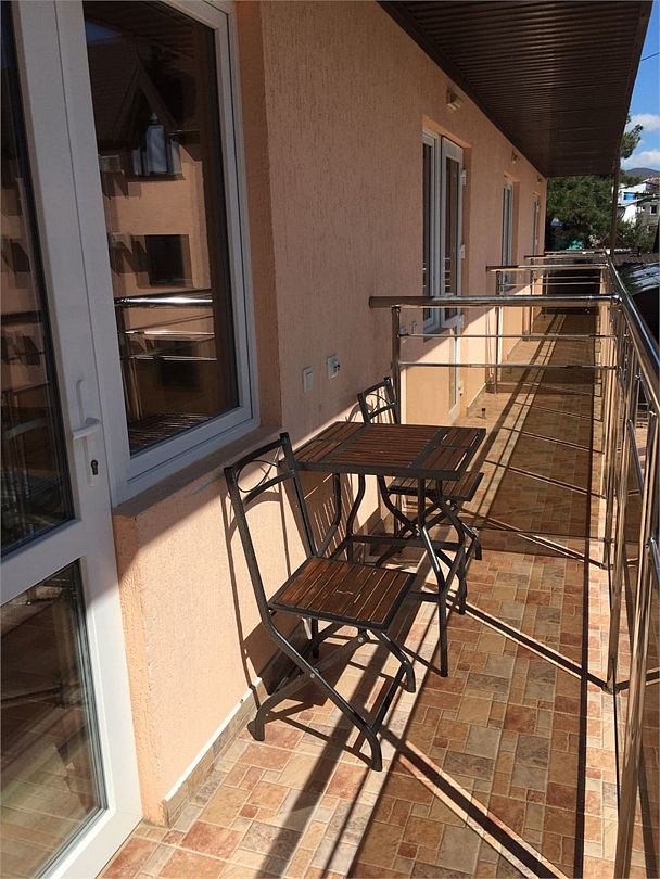 Номер стандарт, 3х местный с одной двуспальной кроватью и одной односпальной кроватью или тремя раздельными односпальными кроватями. Номер расположен в 3х этажном корпусе №2 "Каштан" В номере индивидуальный балкон с видом на бассейн на котором есть столик со стульями и сушилка для белья. Номера для НЕ курящих. Размещение с животными ЗАПРЕЩЕНО!Услуги и удобства