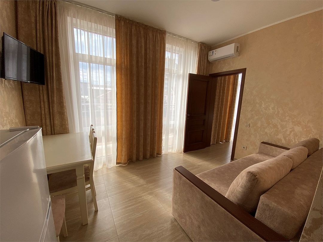 Комфортный 2х комнатный номер с кухней без балкона. Оной двуспальной кроватью и диван кроватью или двумя односпальными кроватями и диван кроватью. Все номера расположены в 3х этажном корпусе №1 "Кипарис". На этаже есть общий балкон с сушилками для белья и гладильные принадлежности. Номера для НЕ курящих. Размещение с животными ЗАПРЕЩЕНО!Услуги и удобства