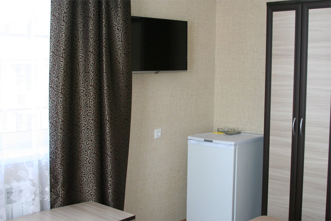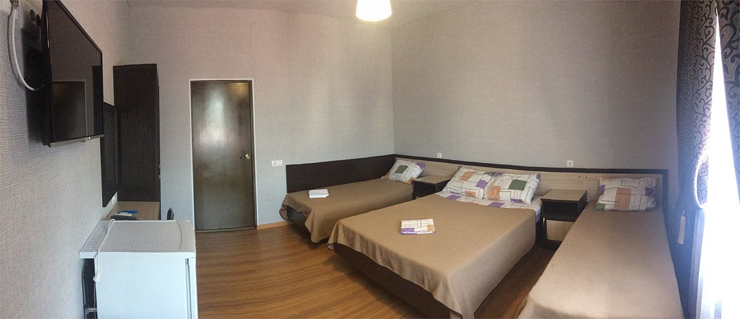 Wi-Fi, холодильник, ванна, банные полотенца, двуспальная кровать, две односпальные кровати, тумбы, стулья, шкаф для одежды, журнальный столик, письменный стол, зеркало, чайник, унитаз, раковина, питьевая вода, отопление, вид на город, вид во двор, ламинат, высокие потолки, стаканы, туалетный столик, туалетные средства, сплит-система, диван-кровать, раскладной диван, телевизор с плоским экраном, москитная сетка, номер для некурящих, услуги прачечной (платно), вешалки-плечикиВ гостиничном номере