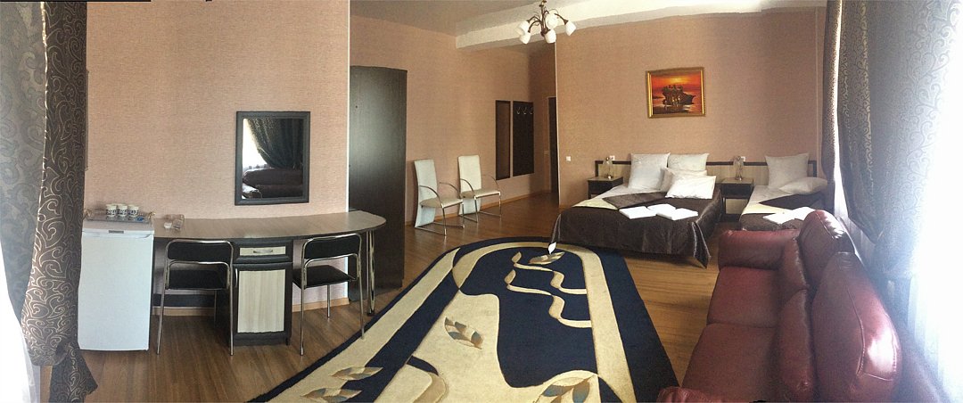 Wi-Fi, холодильник, ванна, банные полотенца, кровать «King size», двуспальная кровать, две односпальные кровати, тумбы, стулья, шкаф для одежды, журнальный столик, зеркало, две комнаты, чайник, унитаз, раковина, питьевая вода, вид во двор, ламинат, высокие потолки, стаканы, туалетный столик, туалетный столик, туалетные средства, сплит-система, телевизор с плоским экраном, москитная сетка, номер для некурящих, кресло-кровать, услуги прачечной (платно), мылоВ гостиничном номере