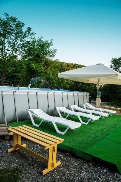 Тип бассейна: открытый бассейн, каркасный бассейнВода в бассейне: подогреваемый бассейнРядом с бассейном: шезлонги, зонтики -