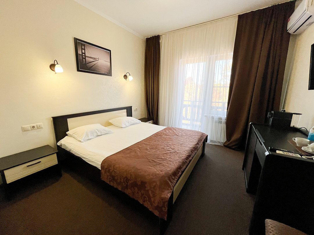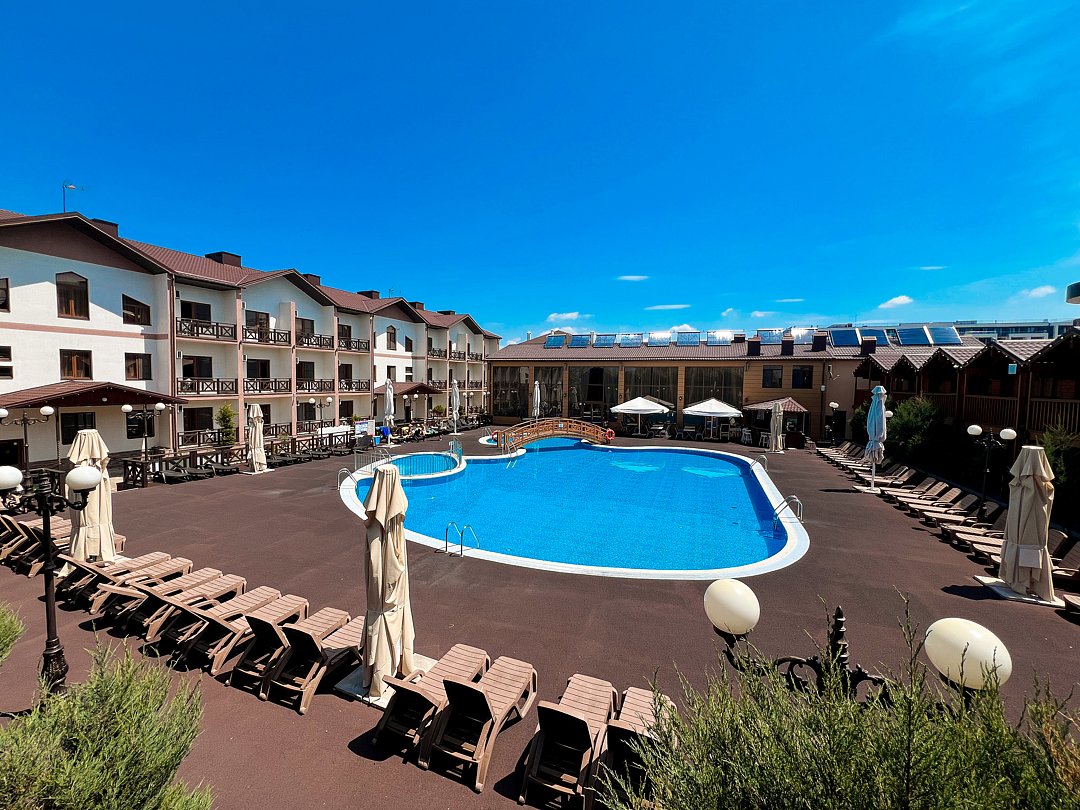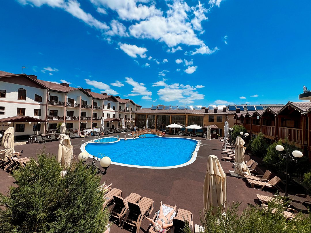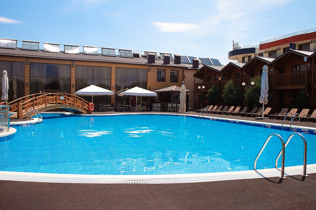 Для проживания гостей предлагаются номера в новом трехэтажном корпусе и 9 комфортабельных деревянных коттеджей. На территории оборудован большой открытый бассейн с безопасной детской зоной для купания и удобной площадкой для отдыха, работает бар-ресторан. Для малышей оборудована игровая площадка, организуются развлекательные анимационные программы. Отдыхающим предоставляется питание по системе шведский стол. Бесплатный Wi-Fi доступен в номерах и на всей территории отеля.