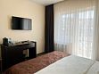 В номере двуспальная кровать, прикроватные тумбочки, шкаф, стул, телевизор, холодильник, чайник, телефон, фен туалетные принадлежности, халат, тапочки, полотенца.