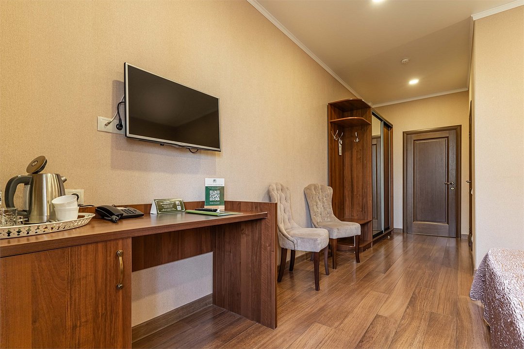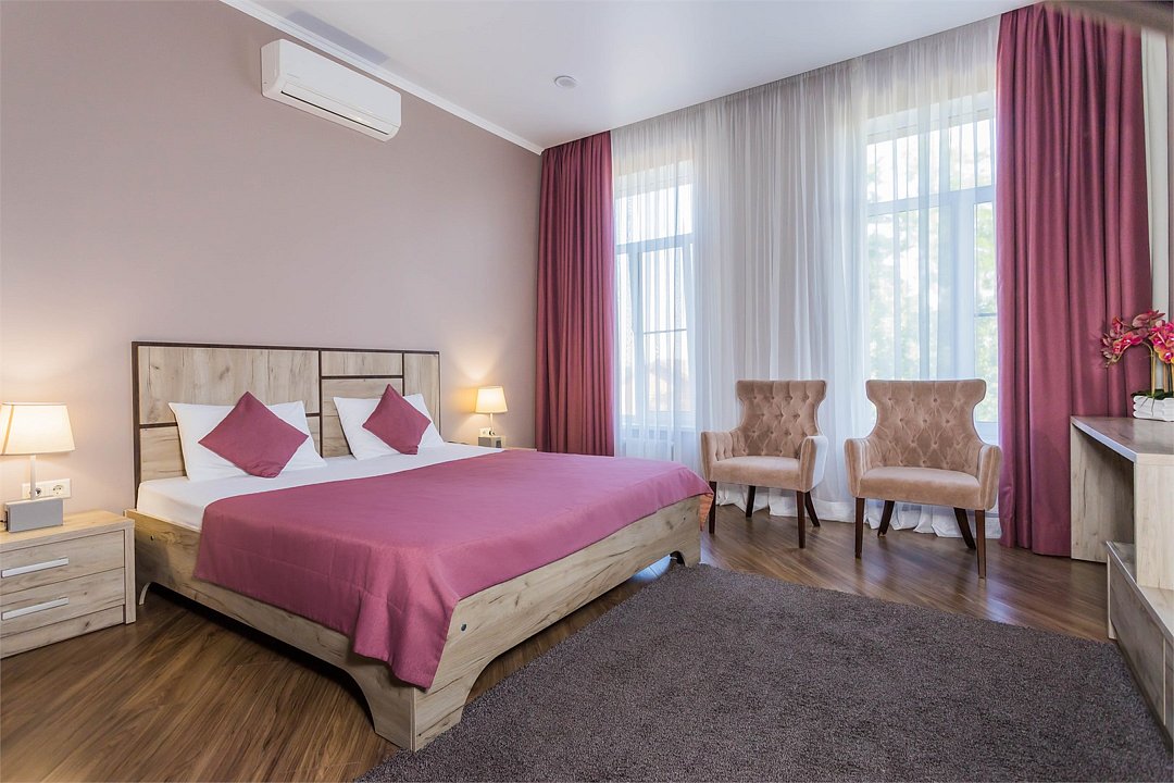 Номера выполнены в европейском стиле, оснащены всем необходимым для комфортного проживания.